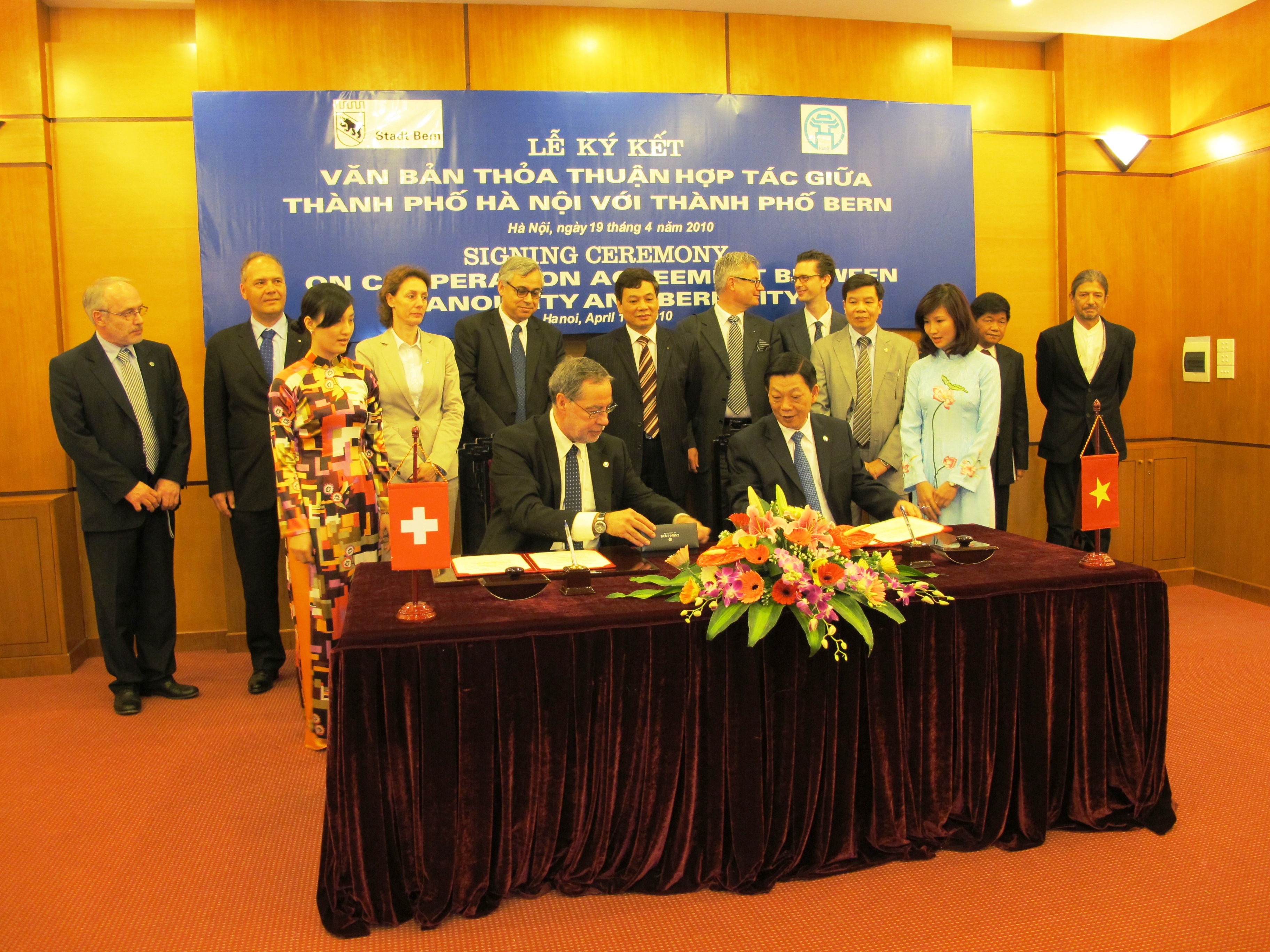 Hanoi und Bern wollen ihre Beziehungen vertiefen: Auf Einladung der Stadtbehörden von Hanoi hat Stadtpräsident Alexander Tschäppät mit einer Stadtberner Vertretung vom 19. bis 21. April 2010 die vietnamesische Hauptstadt besucht, wo die Delegation auch von Staatspräsident Nguyen Minh Triet offiziell empfangen wurde. Die beiden Hauptstädte unterzeichneten ein Agreement zur Zusammenarbeit in kommunalen Fragen und beschlossen die Realisierung einer Blumenuhr in Hanoi als Zeichen der guten Beziehungen. Daneben ehrte Alexander Tschäppät im Namen der Stadt Bern den vietnamesischen Parlamentarier und Tierschützer Nguyen Dinh Xuan für seinen Einsatz gegen illegale Bärenfarmen.