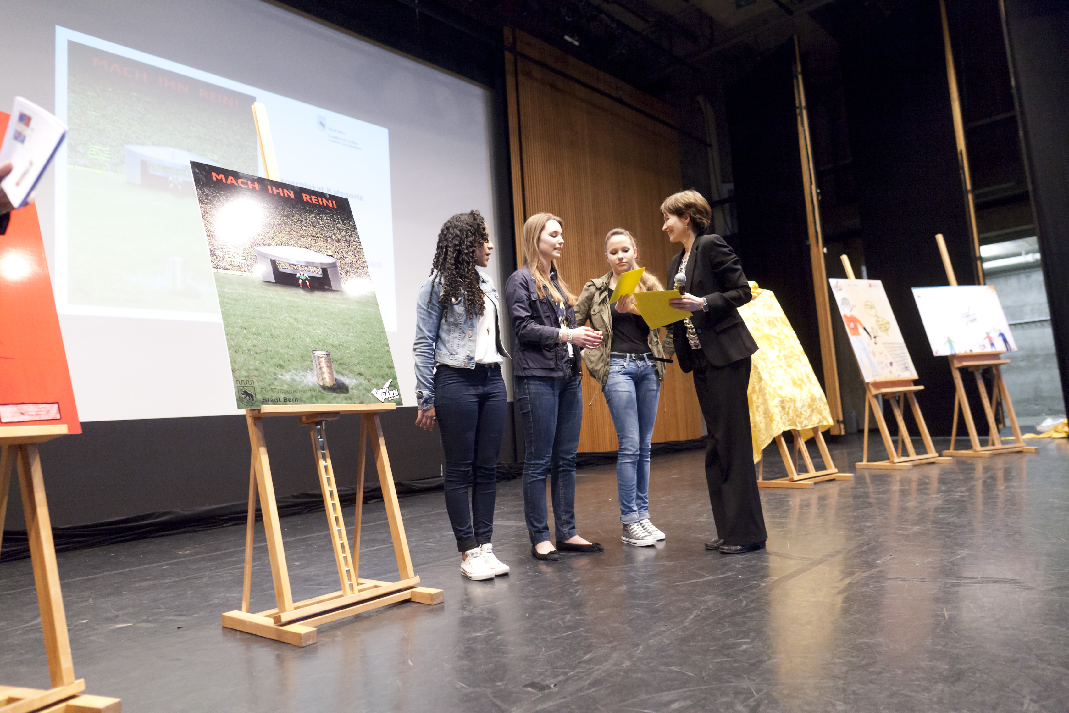 Im Rahmen eines Wettbewerbs haben Stadtberner Schülerinnen und Schüler im vergangenen Winter Anti-Littering-Plakate kreiert. Eine Jury unter Vorsitz von Gemeinderätin Regula Rytz hat nun die 119 eingereichten Werke begutachtet und die besten Plakate ausgezeichnet. Gleichzeitig wurde dem Plakat mit den meisten Stimmen aus dem online-Voting der Publikumspreis verliehen. Der Plakat-Wettbewerb ist Bestandteil der Kampagne «Subers Bärn – zäme geits!» und soll mithelfen, die Bevölkerung für die Littering-Problematik zu sensibilisieren.
