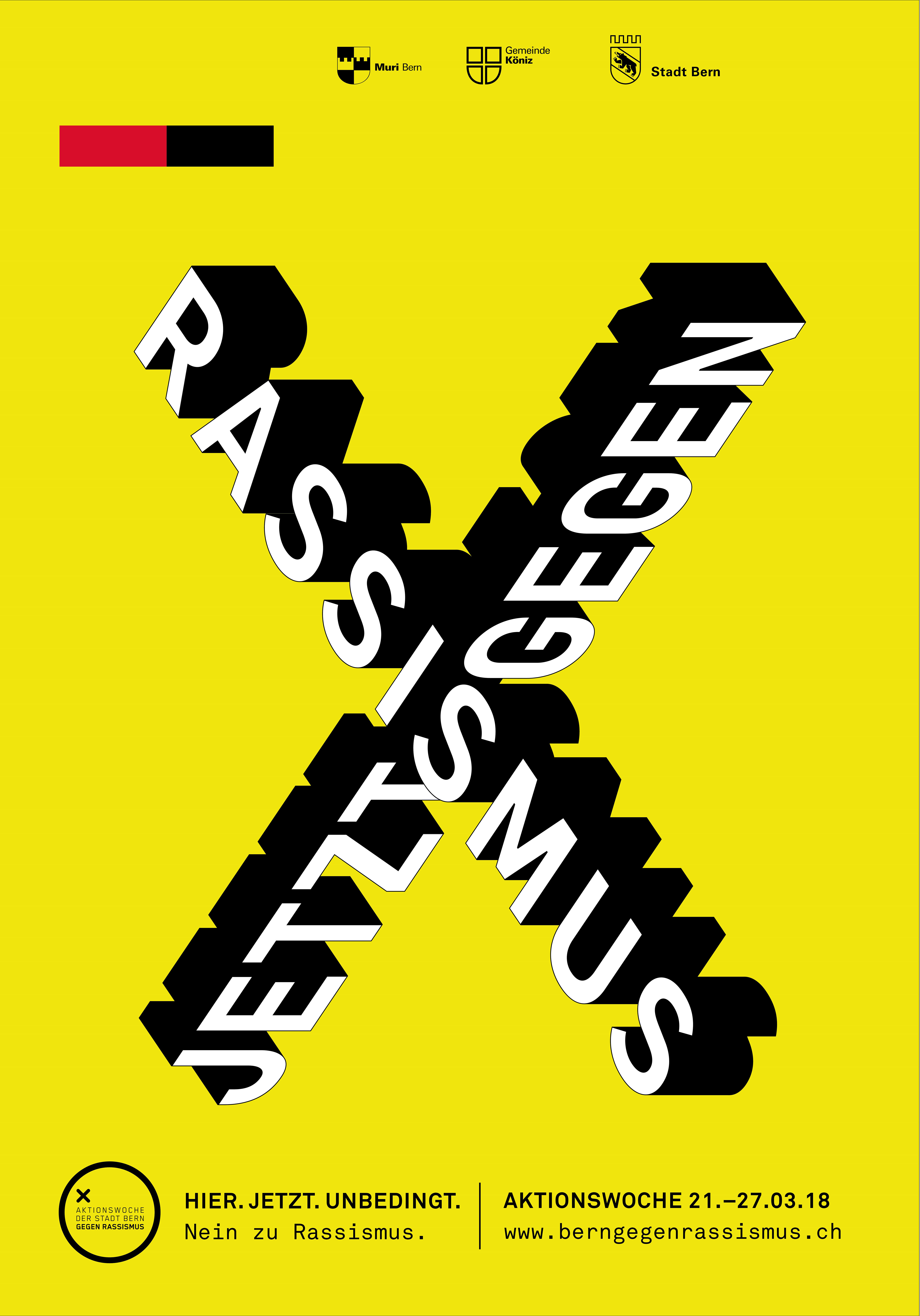 Ab morgen wird auf dem Bahnhofplatz der Stadt Bern zum zweiten Mal eine Skulptur mit der Botschaft «Jetzt gegen Rassismus» platziert. Die Skulptur kündigt die 9. Aktionswoche gegen Rassismus an, die vom 20. bis 27. März in Bern, Köniz, Muri und Ostermundigen stattfindet.