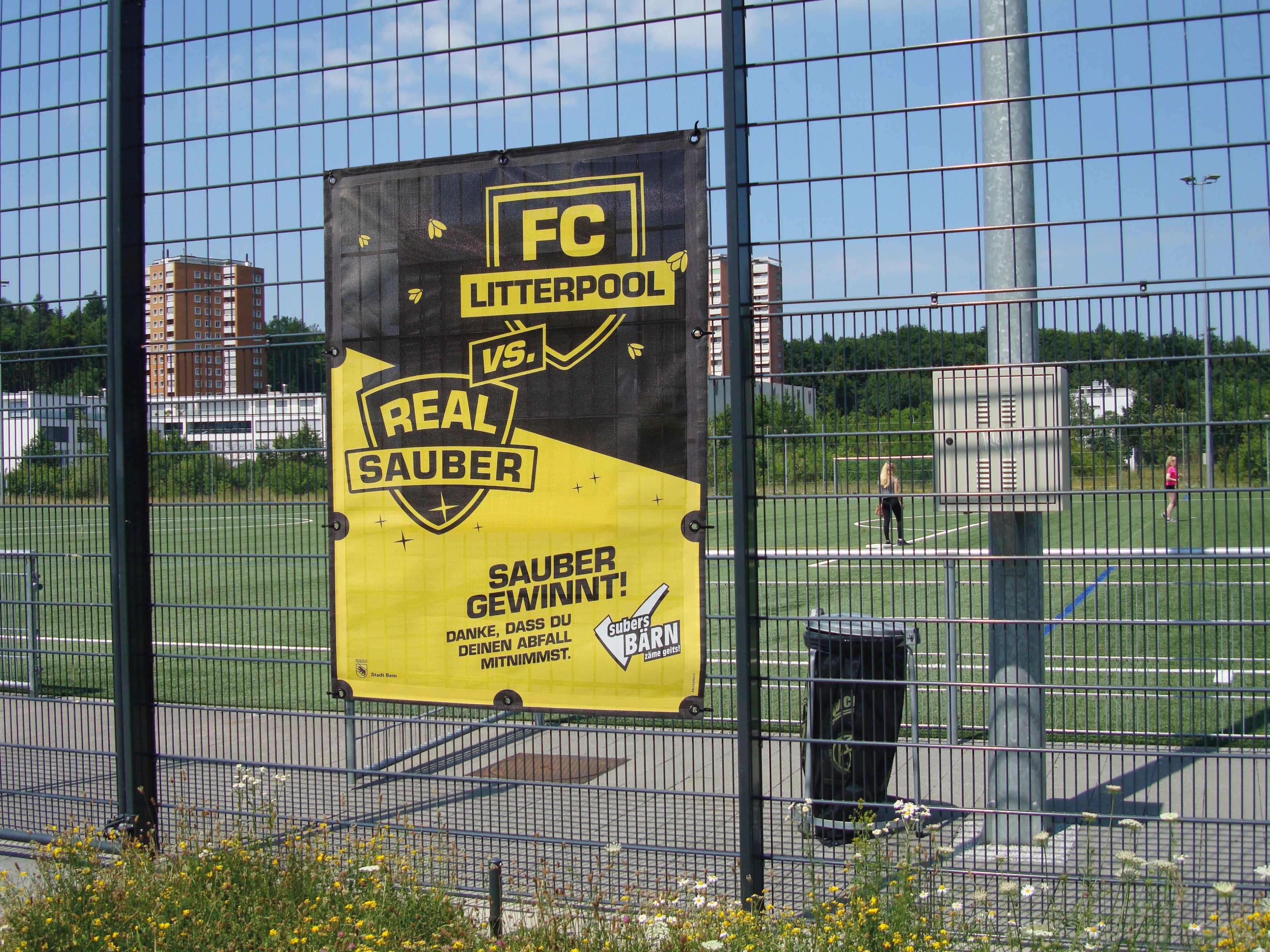 Banner "Sauber gewinnt" Sportplatz Weissenstein