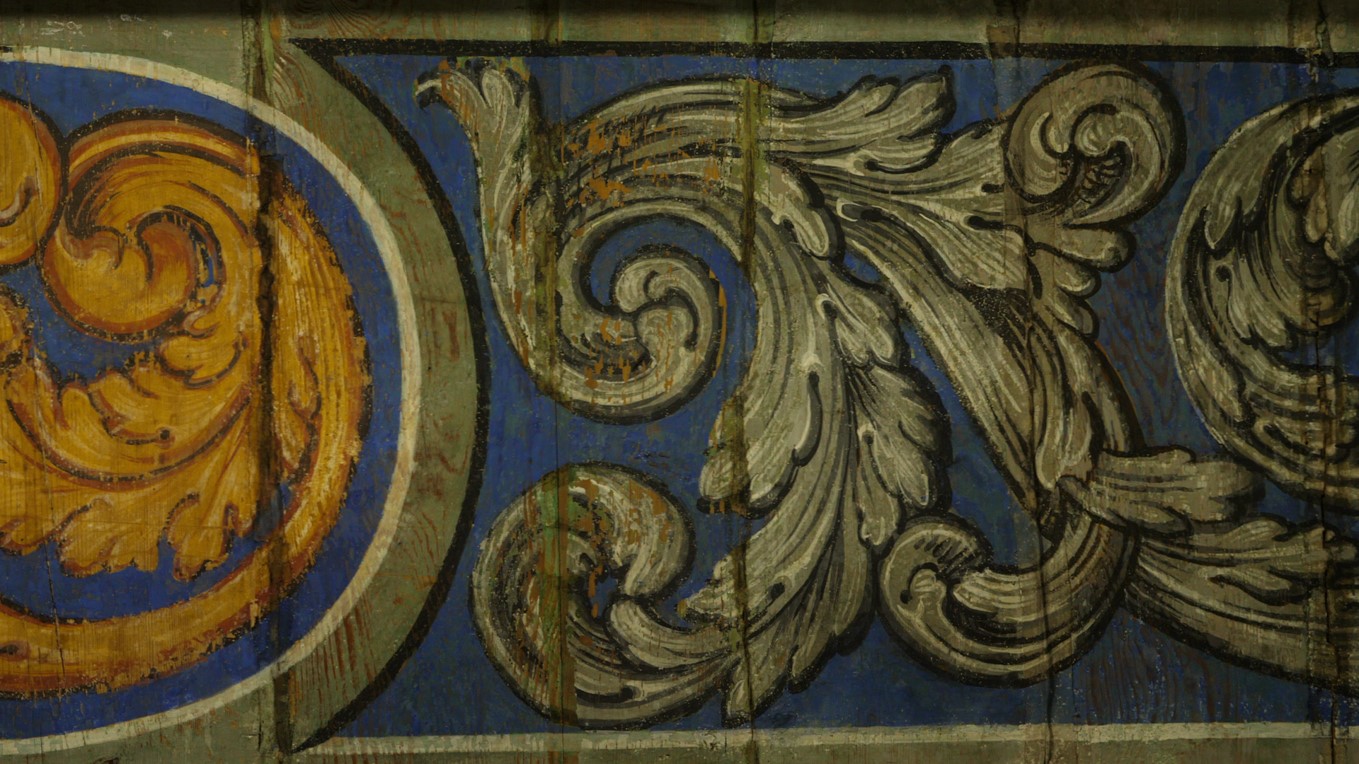 Der spannendste Raum im Bondlihaus ist sicher das sogenannte «Götterzimmer». Die derzeitige Sanierung brachte neue Erkenntnisse über dessen ursprüngliche Ausstattung zutage: Eine mit grünen Ranken bemalte Decke passt zu der frühbarocken Wandmalerei. Diese Raumfassung wurde allerdings bereits kurze Zeit nach ihrer Entstehung um 1689 mit einem Täfer überdeckt. Das aufwändig bemalte Grisaille-Täfer zeigt Figuren aus der Skulpturensammlung des Sonnenkönigs Louis XIV. Diese Ausstattung lässt den hohen Anspruch des damaligen Besitzers erahnen, ein eigenes Petit Versailles nach Bern zu bringen. Im Rahmen der aktuellen Untersuchungen konnte nachgewiesen werden, dass dieses sogenannte «Göttertäfer», das sich jahrelang im Schloss Oberhofen befand und dessen Herkunft lange falsch angenommen wurde, tatsächlich aus diesem Raum stammt. Gleichzeitig mit dem Einbau des «Göttertäfers» um 1700 wurde auch die Decke des Raums überfasst und zeigt seither ein Rankenmuster auf auffällig blauem Hintergrund. Die damals verwendete blaue Farbe war sehr kostbar, ist aber heute eine konservatorische Herausforderung. Nach der komplexen Restaurierung wird die Decke dem Raum wieder einen Teil seiner ursprünglichen Ausstrahlung zurückgeben.