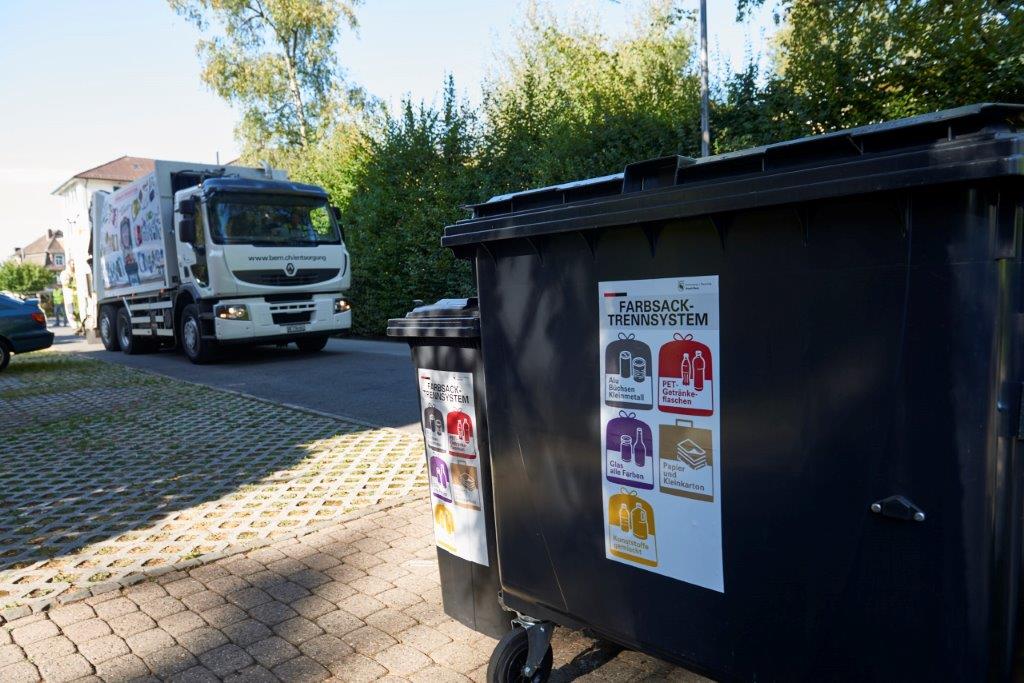 Seit zwei Wochen leeren die bernischen Kehrichtfahrzeuge auf ihrer Sammeltour auch die Container mit den Farbsäcken des neuen Trennsystems. Die ersten Erfahrungen sind positiv: An der heutigen Medienveranstaltung informierten Gemeinderätin Ursula Wyss und Walter Matter, Leiter von Entsorgung + Recycling Stadt Bern, über den erst 14 Tage jungen Versuch.