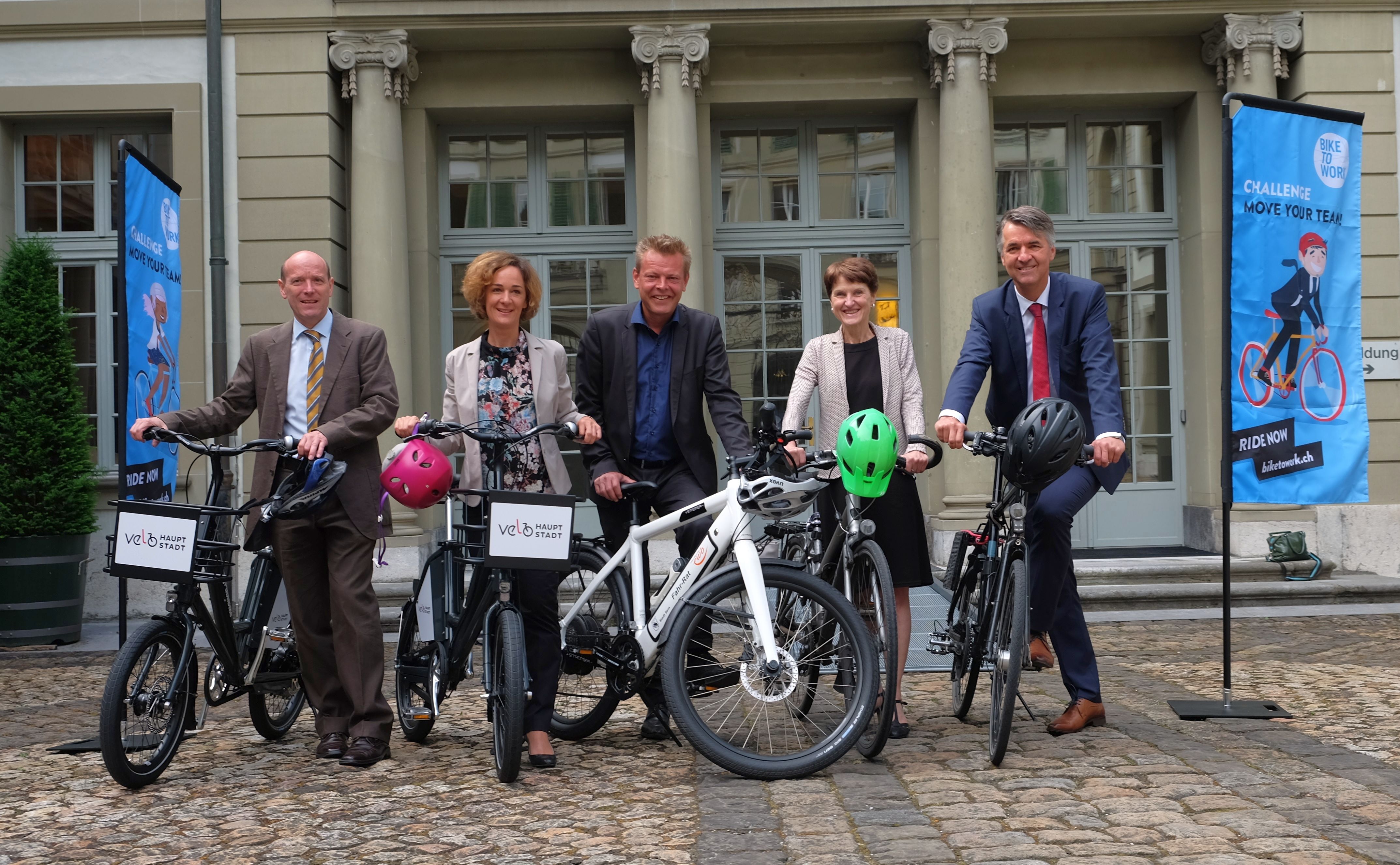Vom 1. bis zum 30. Juni 2017 findet die nationale Aktion «bike to work» von Pro Velo Schweiz statt, an der sich auch die Stadtverwaltung Bern beteiligt. Die Mitglieder des Gemeinderats knüpfen an ihr Engagement der letzten Jahre an und machen auch in der neuen Formation mit. Über 690 Kilometer während 79 Prozent der Arbeitstage mit dem Velo oder zu Fuss – diese Vorlage aus dem Jahr 2016 gilt es zu überbieten. Dabei wird am Namen des gemeinderätlichen Teams festgehalten; der «Fahr-Rat» engagiert sich mit seiner Teilnahme für eine velofreundliche Stadt Bern und macht auf das gemeinsame Ziel aufmerksam, den Anteil des Velos am Gesamtverkehr weiter zu erhöhen. Entsprechend will er mit gutem Beispiel vorangehen und einen Beitrag zur betrieblichen Velo- und Gesundheitsförderung sowie dem respektvollen Umgang aller Verkehrsteilnehmenden untereinander leisten. Nebst dem «Fahr-Rat» nehmen über 50 Teams aus der Stadtverwaltung an «bike to work» teil. Durch zusätzliche Anreize, wie die Abgabe eines Geschenkgutscheins für die Anwerbung einer neuen Teilnehmerin beziehungsweise eines neuen Teilnehmers, sollen das Bewusstsein für die Region, für die Sicherheit im Strassenverkehr aber auch der Spass an der Sache gefördert werden.