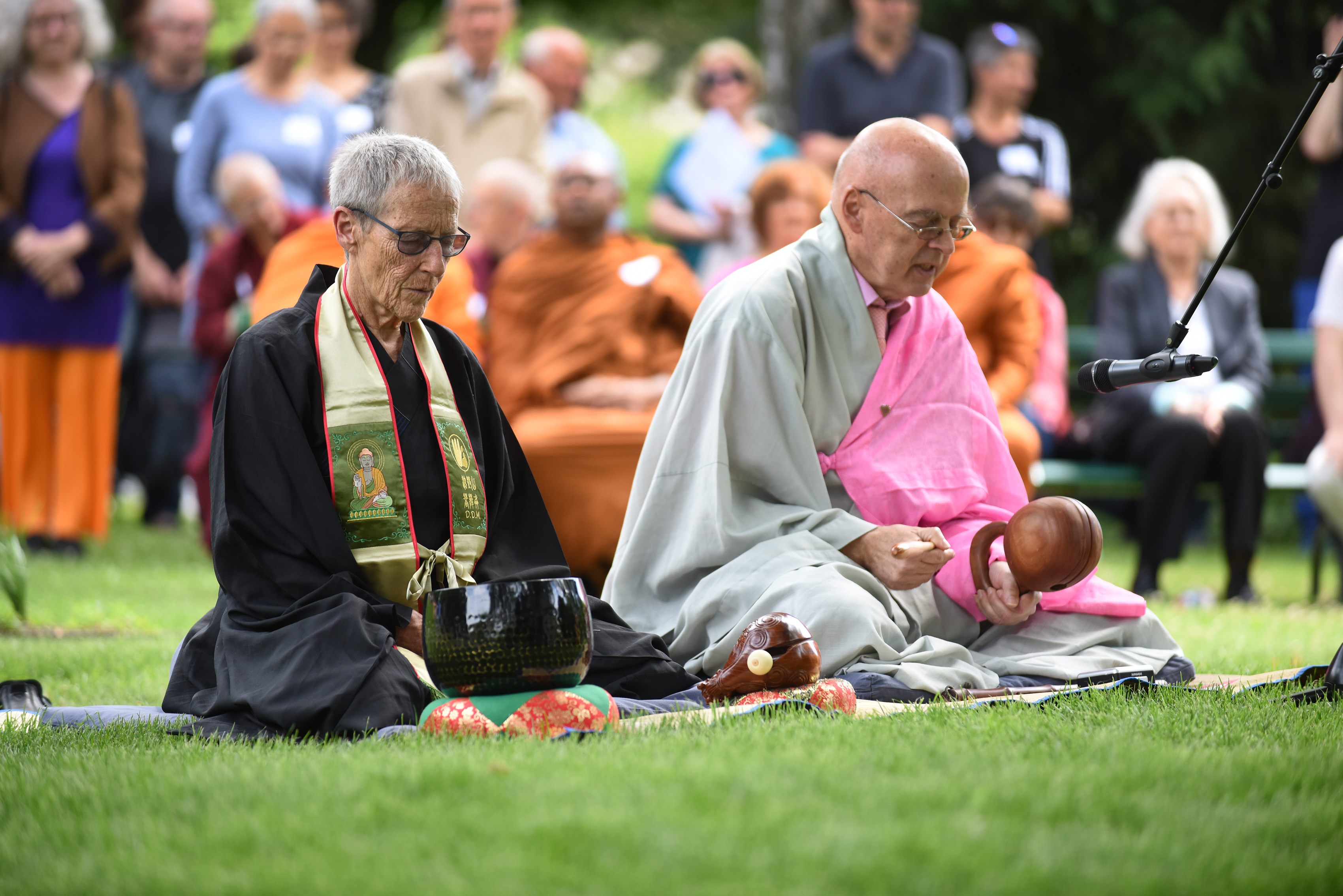 Eröffnungszeremonie Buddha-Garten: Hildi Thalmann und Abt Jin Kang Dieter Obrist. Bild: Stefan Maurer