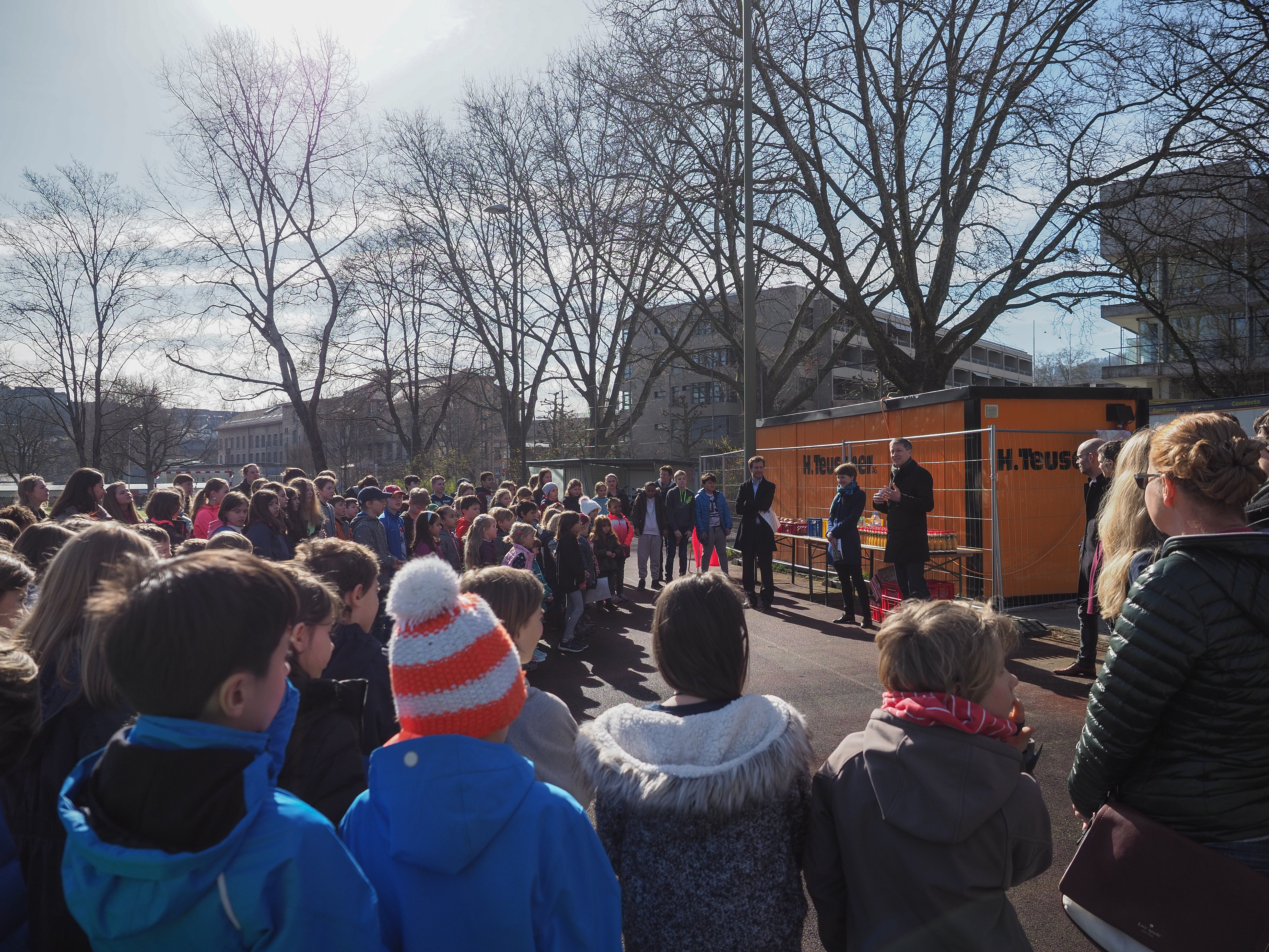Schulkinder an der Grundsteinlegung Volksschule Marzili Bild Markus Hulliger.jpg
