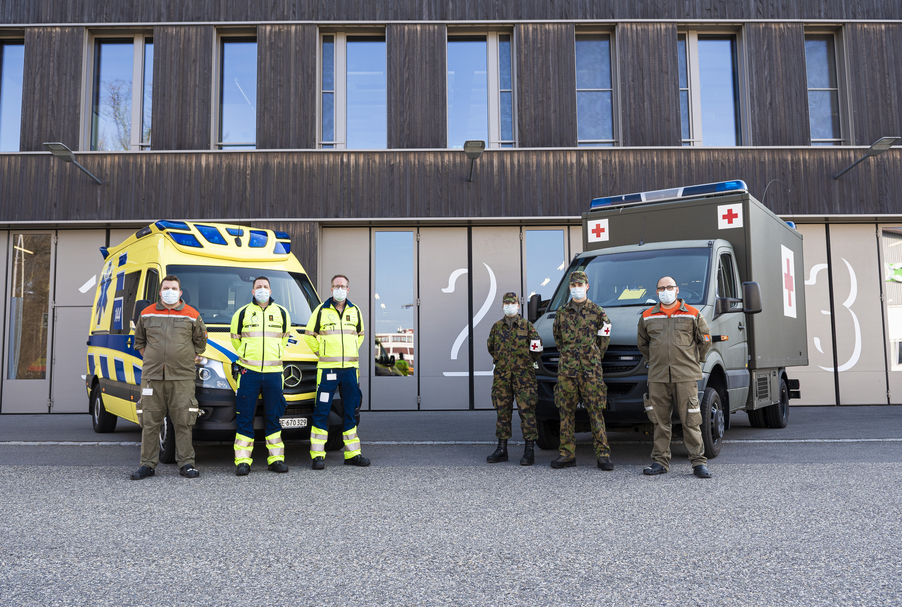 Die Sanitätspolizei Bern wird durch das Militär und den Zivilschutz unterstützt (Bild: Schutz und Rettung Bern)