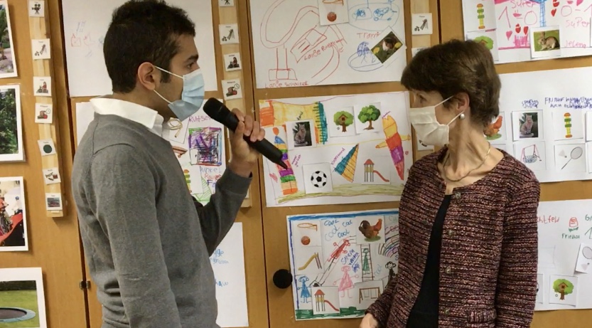 Aaron (17j.) erklärt Franziska Teuscher, die Zeinungen und Wünsche seiner Mitschülerinnen, die bei der Mitiwirkung gesammelt wurden .jpg