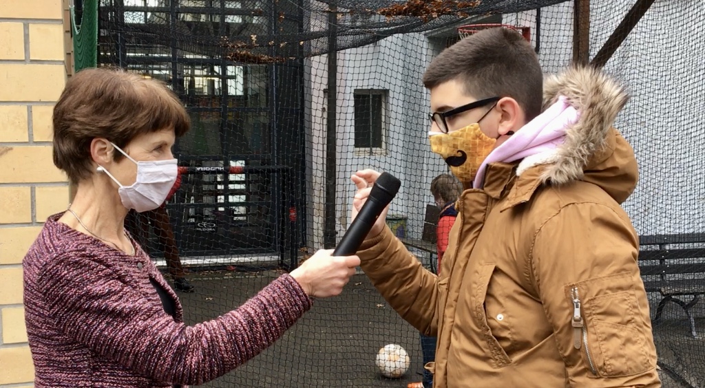 Brahim (13j.), HPS Schüler, im Gespräch mit Gemeinderätin Teuscher