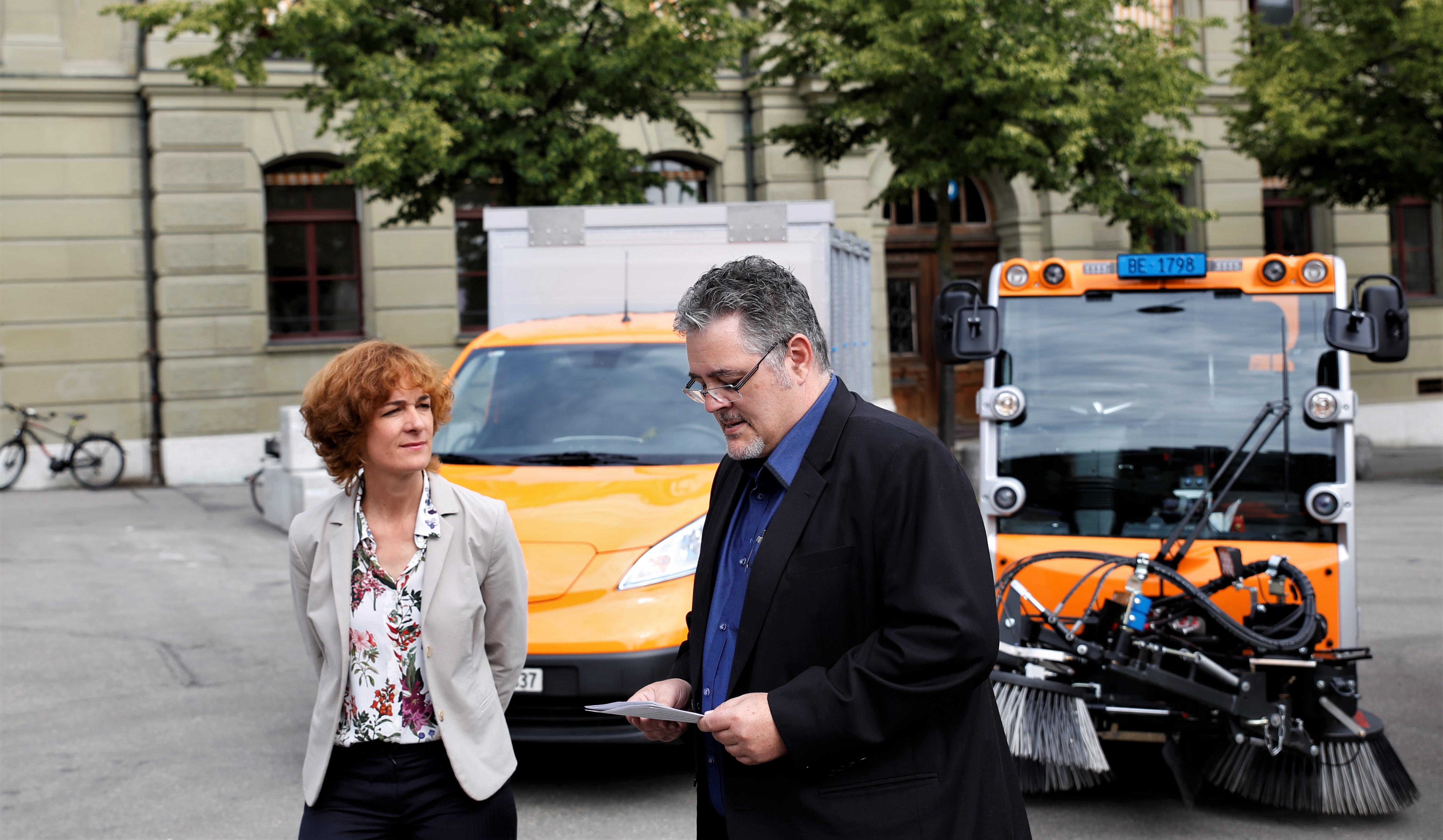Gemeinderätin Ursula Wyss und Patric Schädeli, Leiter Unterhalt und Betrieb Tiefbauamt