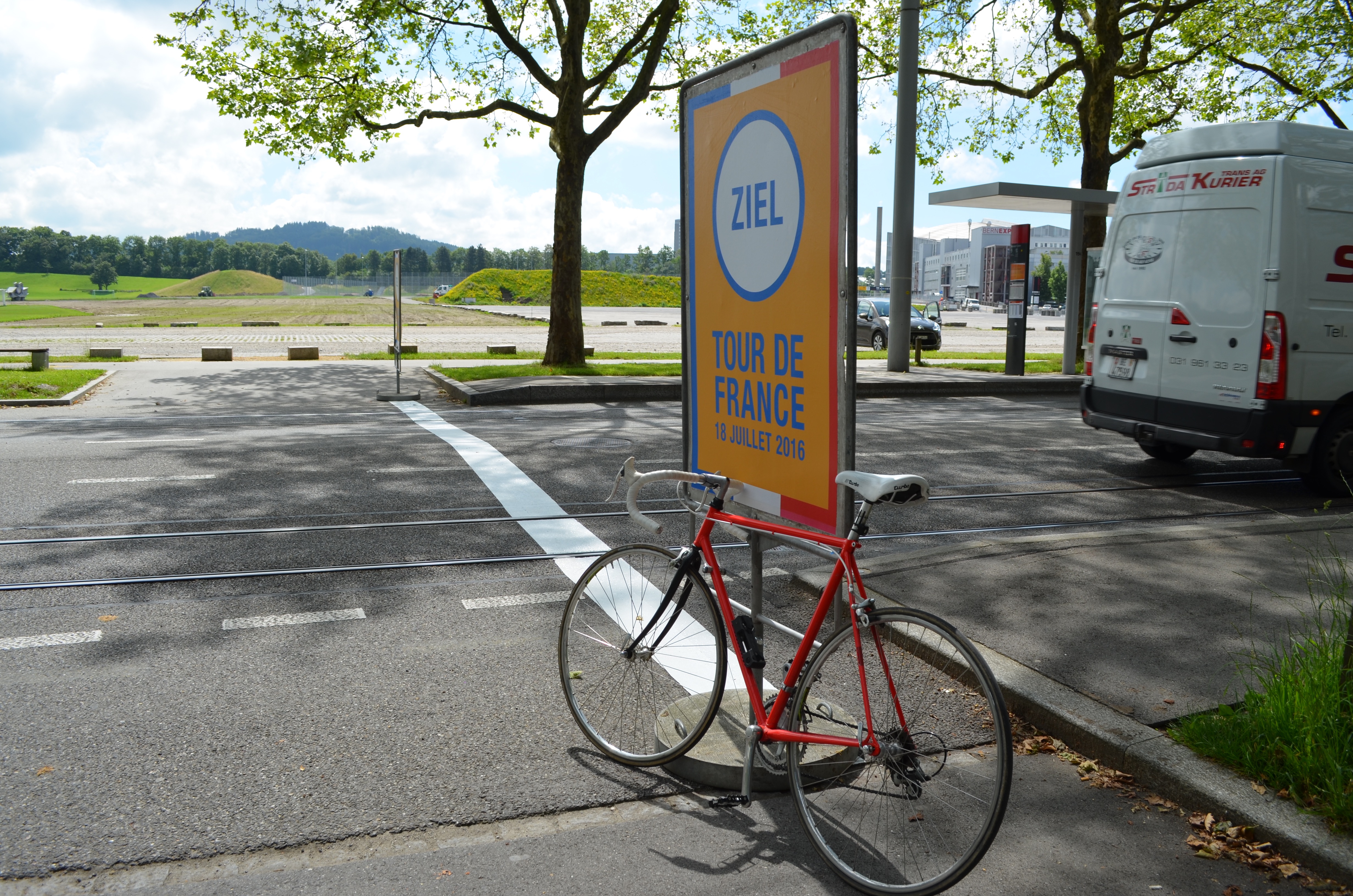 Die Tour de France 2016 wird am Montag, 18. Juli die Schweizer Grenze bei Les Verrières überqueren und am Abend am Etappenort Bern eintreffen. Dort werden die Radprofis um etwa 18 Uhr die Ziellinie beim Stade de Suisse Wankdorf überqueren, die von Stadtpräsident Alexander Tschäppät symbolisch aufgemalt wurde. Damit die Rennfahrer den Zielspurt trotz der teilweise parallel verlaufenden Tramschienen nicht mit einem Sturz beenden, sind in den vergangenen Monaten verschiedene Varianten zur Abdeckung der Tramschienen geprüft worden. Neben der Sicherheit der Fahrer waren auch die Wirtschaftlichkeit und der zeitnahe Ein- und Ausbau der Abdeckung wichtige Kriterien.