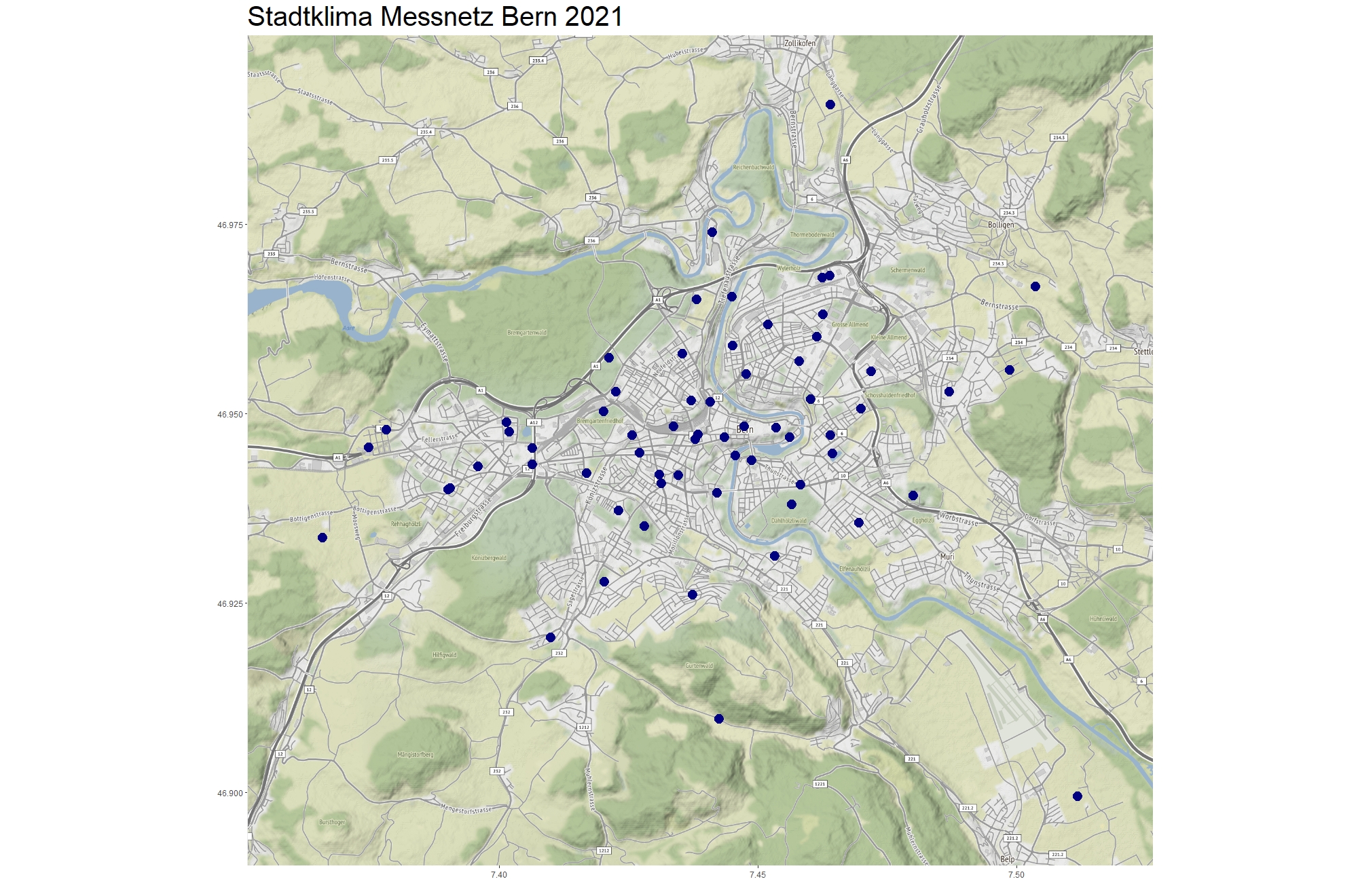 Die Stadt Bern will im Rahmen einer Projektpartnerschaft mit der Universität Bern und Energie Wasser Bern (ewb) den Weiterbetrieb des Messnetzes für hochaufgelöste Temperaturdaten im Berner Stadtgebiet von 2021 bis 2025 sicherstellen. Eine Vereinbarung zur Zusammenarbeit zwischen den Projektpartnern hat der Berner Gemeinderat im Dezember 2020 genehmigt. Von 2018 bis 2020 wurde das Messnetz von der Universität Bern aufgebaut und betrieben. In den kommenden fünf Jahren werden jeweils zwischen Mai und September an rund 60 Standorten auf dem gesamten Stadtgebiet Temperaturmessungen durchgeführt. Die diesjährigen Messungen starten am 15. Mai und dauern bis zum 15. September.