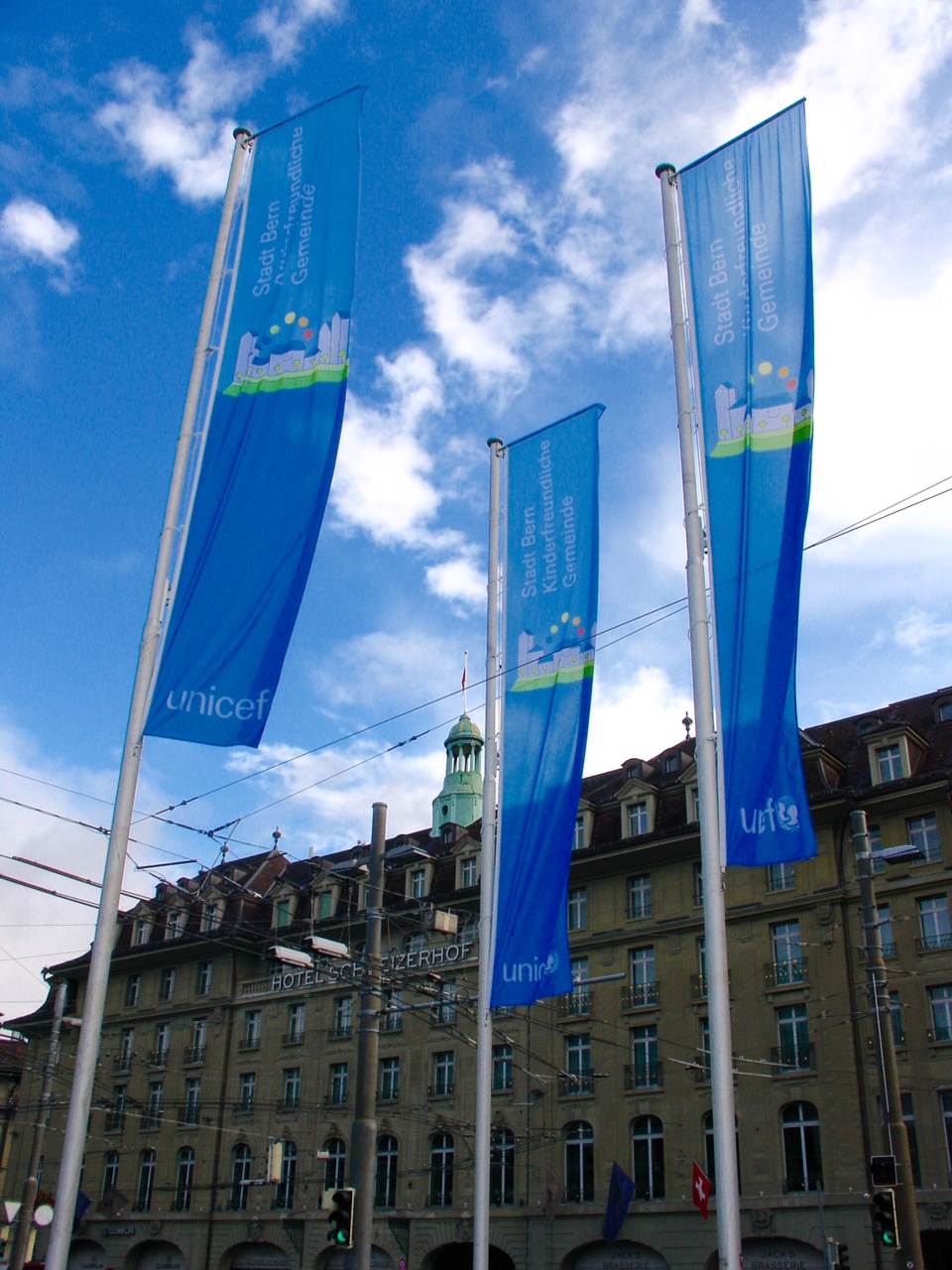 7 Bild 2 Fahnen Bahnhofplatz Kinderfreundliche Gemeinde UNICEF