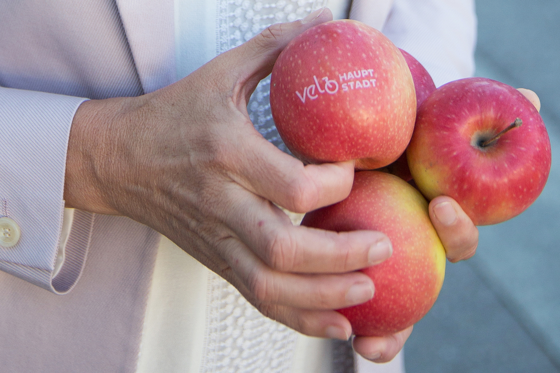 Wer heute im Raum Bahnhof mit dem Velo unterwegs war, bekam Vitamine geschenkt: Mitarbeitende der Berner Stadtverwaltung verteilten anlässlich des Welt-Velo-Tages insgesamt 1200 Schweizer Bio-Äpfel. Bedruckt waren die Äpfel mit dem Logo der Velohauptstadt Bern, natürlich in essbarer Lebensmittelfarbe. Mit dieser Aktion bedankte sich die Stadt Bern bei allen Velofahrenden dafür, dass sie mit dem Velo unterwegs sind. Mit der 2014 vom Gemeinderat verabschiedeten Velo-Offensive fördert Bern den Veloverkehr als klimaschonende und stadtverträgliche Mobilität. Merci-Äpfel verteilten auch Stadtpräsident Alec von Graffenried sowie die beiden Gemeinderätinnen Ursula Wyss und Franziska Teuscher. Der Welt-Velo-Tag fand erstmals 2018 statt, einberufen hat ihn die Generalversammlung der Vereinten Nationen.