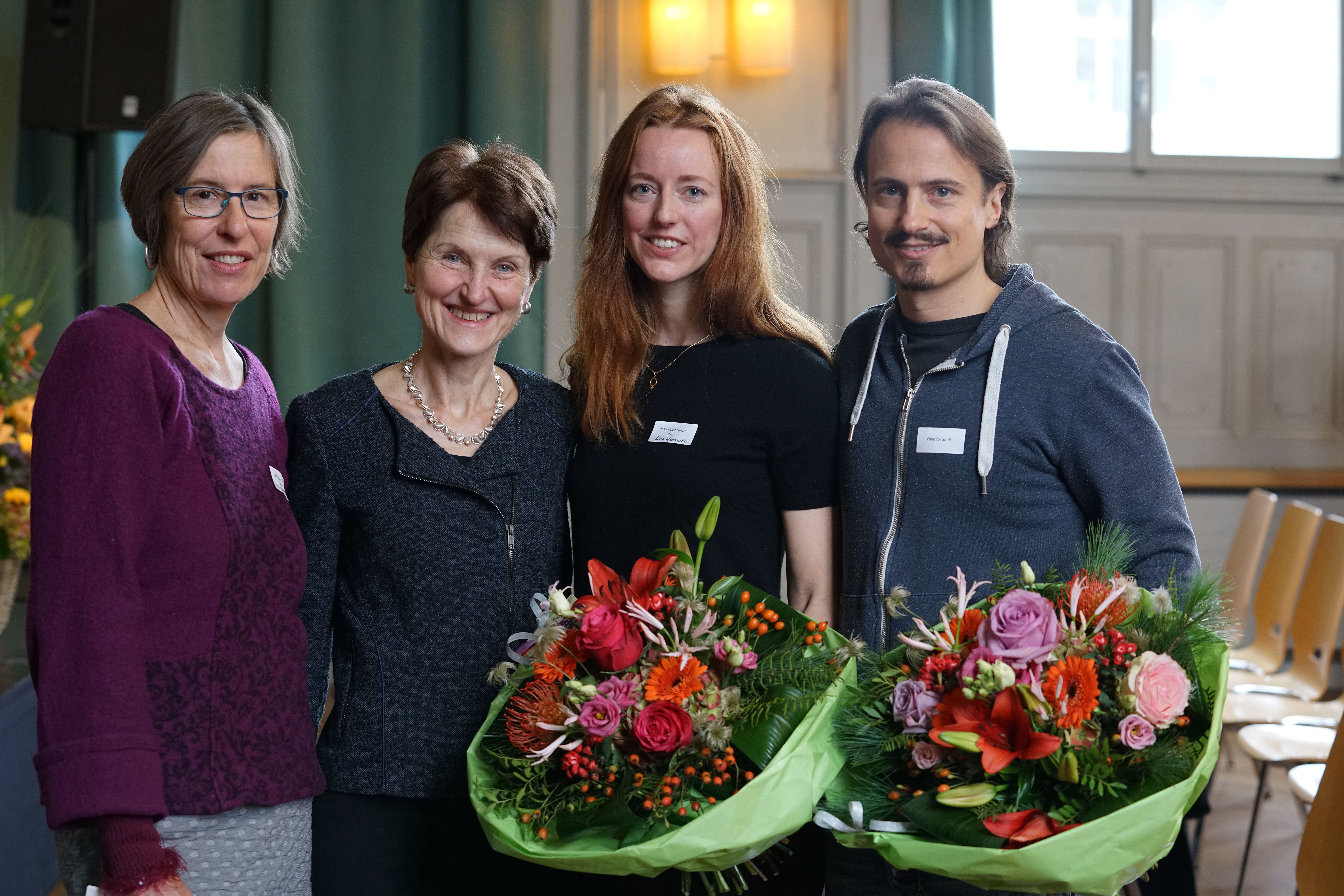 Der «Berner Sozialpreis 2019 freiwillig.engagiert» geht an vier Projekte: Die Gartenprojekte «Food for Souls» und «HEKS Neue Gärten Bern» erhalten je 7000 Franken, die Sprachprojekte «Deutsch Bern West» und «Asyltreff Länggasse und Deutsch-Lernfoyer» je 3000 Franken. Sozialdirektorin Franziska Teuscher hat den mit insgesamt 20‘000 Franken dotierten Sozialpreis der Stadt Bern am 5. Dezember, dem UNO-Tag der Freiwilligen, im Kulturzentrum PROGR verliehen.