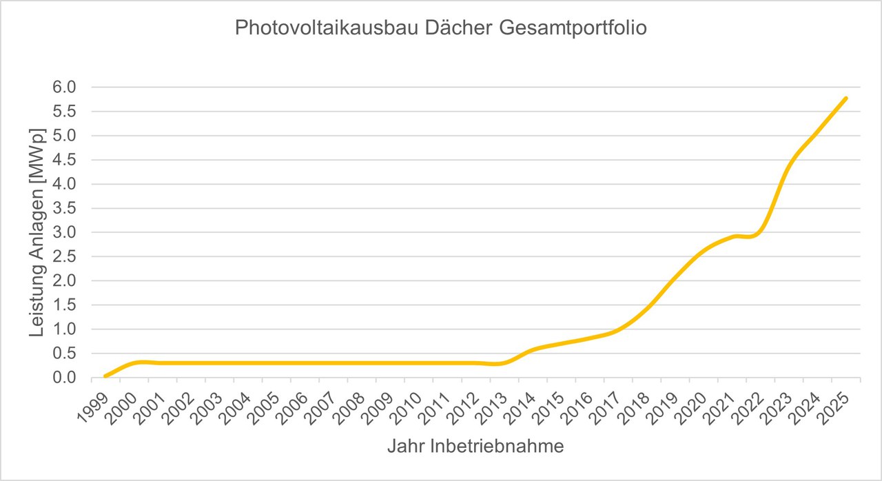 Seit Kooperationen mit den Photovoltaik-Partner*innen bestehen (2014), konnte der Ausbau der Photovoltaik (PV) vorangetrieben werden. Die PV-Branche hat sich seither aufgrund der gesetzlichen Vorgaben und des technischen Fortschritts stark gewandelt. Nebst der bisher bewährten Strategie der Zusammenarbeit mit den verschiedenen Partnerinnen und Partnern soll das noch ungenutzte Solarenergie-Potenzial in der Stadt Bern künftig besser ausgeschöpft werden. Dafür wurde ein stadtinternes «Umsetzungskonzept Solar» erarbeitet – mehr Informationen dazu finden sich in der Medienmitteilung des Gemeinderates vom 15. August 2024.