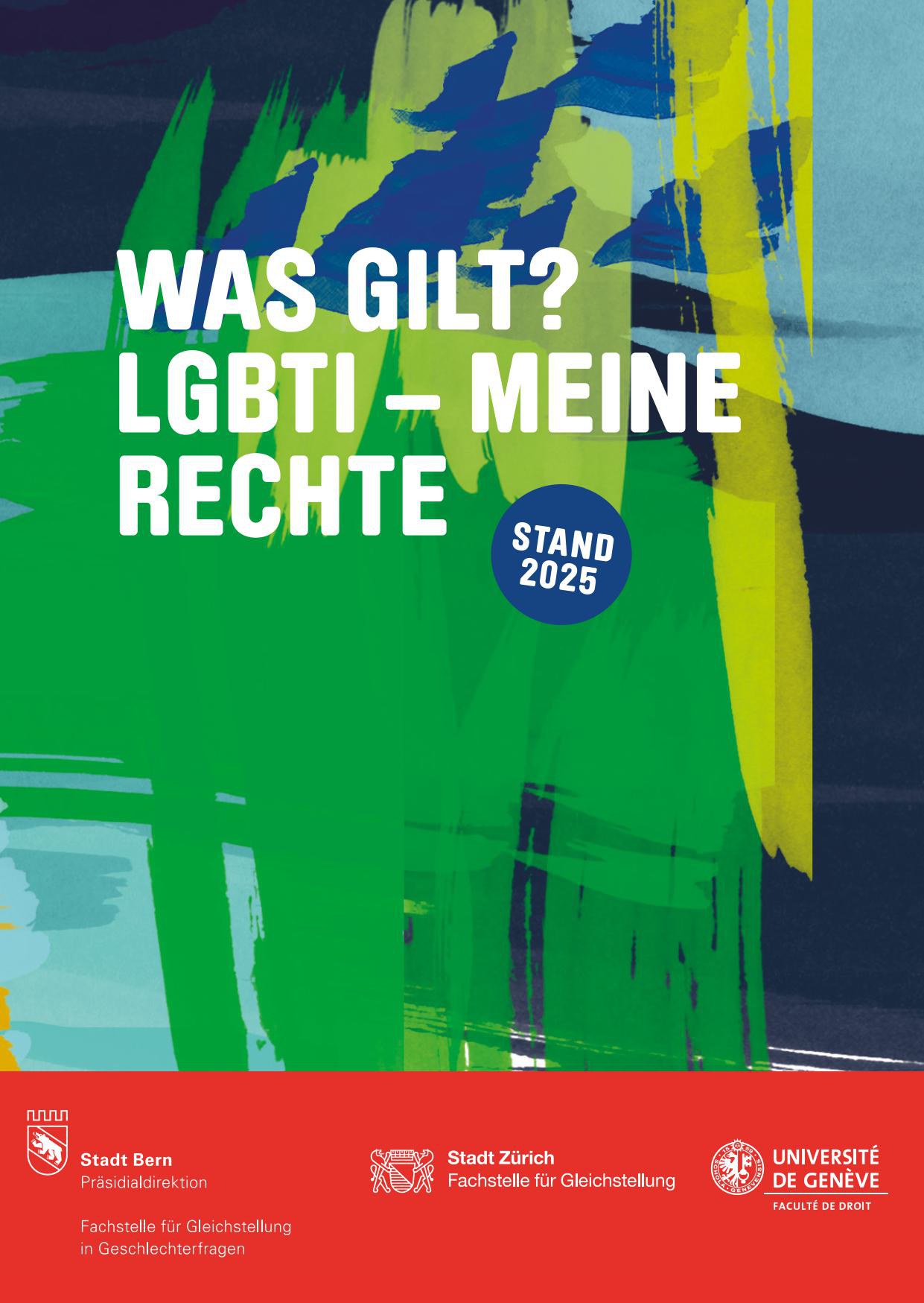 Im Alltag von lesbischen, schwulen, bisexuellen, trans und intergeschlechtlichen Menschen (LGBTI) gibt es viele rechtliche Fragen, die mit ihrer sexuellen Orientierung, ihrer Geschlechtsidentität oder der Variation ihrer Geschlechtsmerkmale zusammenhängen. Diese Broschüre beantwortet entsprechende Alltagsfragen aus juristischer Sicht.