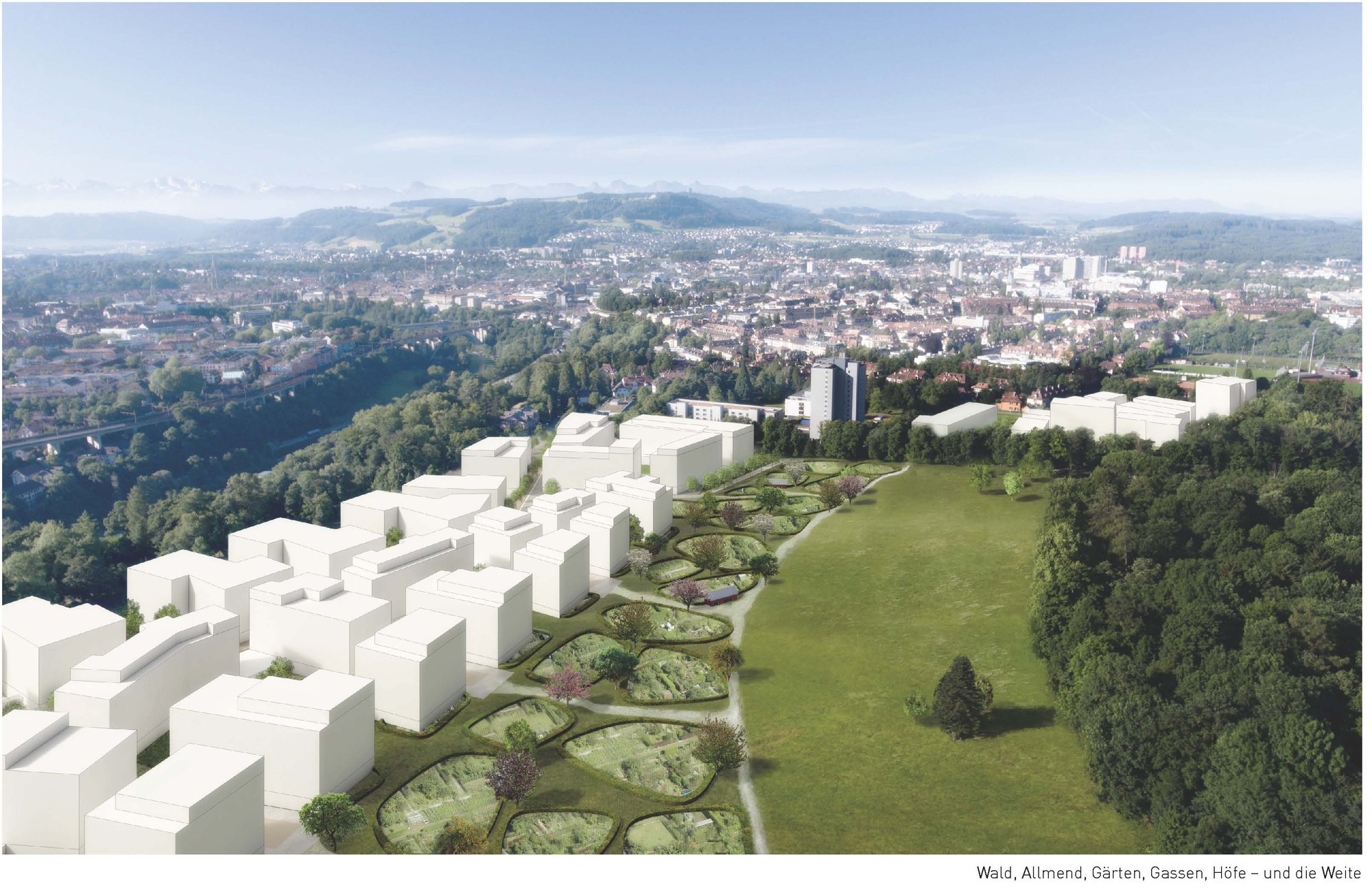 Wo ehemals die Kehrichtverbrennungsanlage stand, entwickelt die Stadt Bern ein nutzungsdurchmischtes Wohnquartier, das Warmbächli-Areal. Im Rahmen der Überbauungsordnung werden die Etappierung und die Ordnungsprinzipien der Aussenraumgestaltung festgelegt.