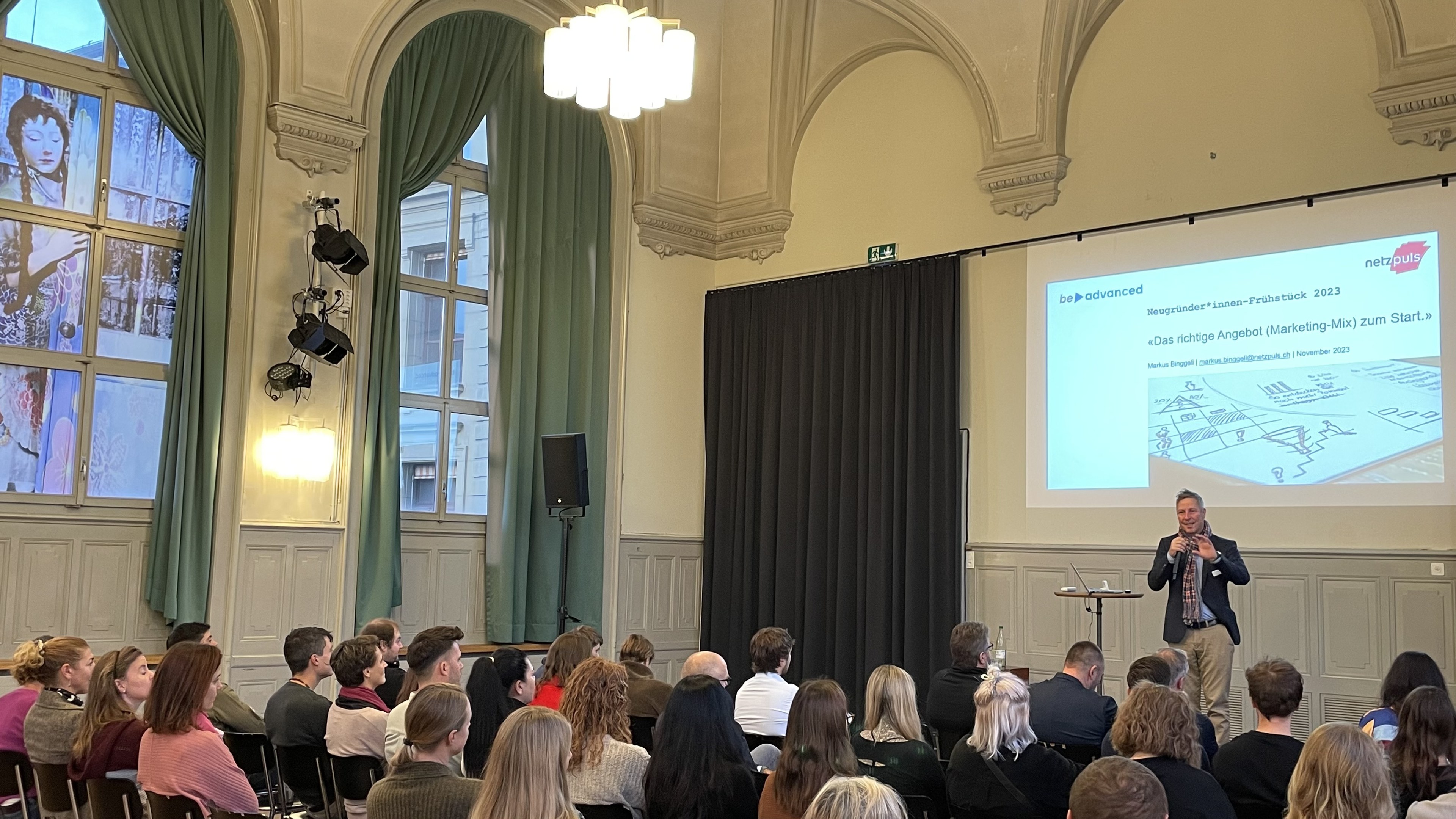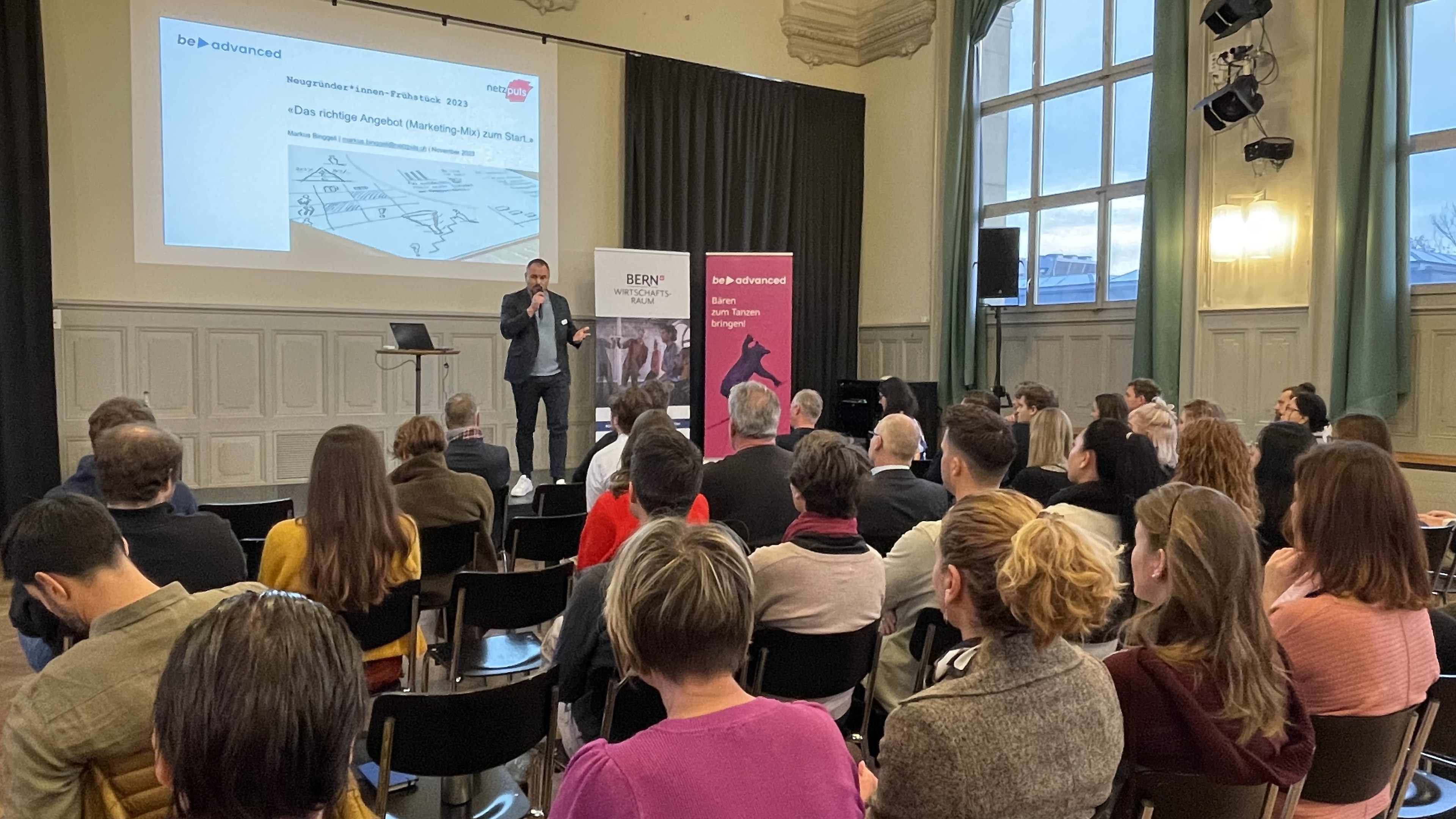 Thema dieses Jahr war «Das richtige Angebot zum Start» präsentiert von Markus Binggeli von Netzpuls AG. Inspirierende Inputs und konkrete Praxisbeispiele erzählten Nicolas Lutz vom Health Center Kirchenfeld und Thomas Kirchmann von der Schreinerei Kirchmann. Lisa Stalder führte uns durch den Morgen mit interessanten Interviewfragen. Bei einem reichhaltigen Frühstück hatten alle die Gelegenheit, neue Kontakte zu knüpfen und sich mit Gleichgesinnten auszutauschen.