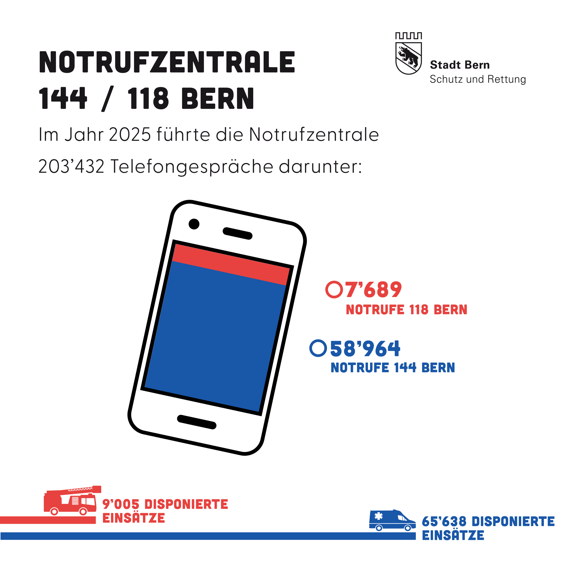 Schutz und Rettung Bern betreibt als Teil der Kantonalen Notrufzentrale KEZ Bern die Feuerwehrnotrufzentrale FNZ 118 und die Sanitätsnotrufzentrale SNZ 144 Bern.