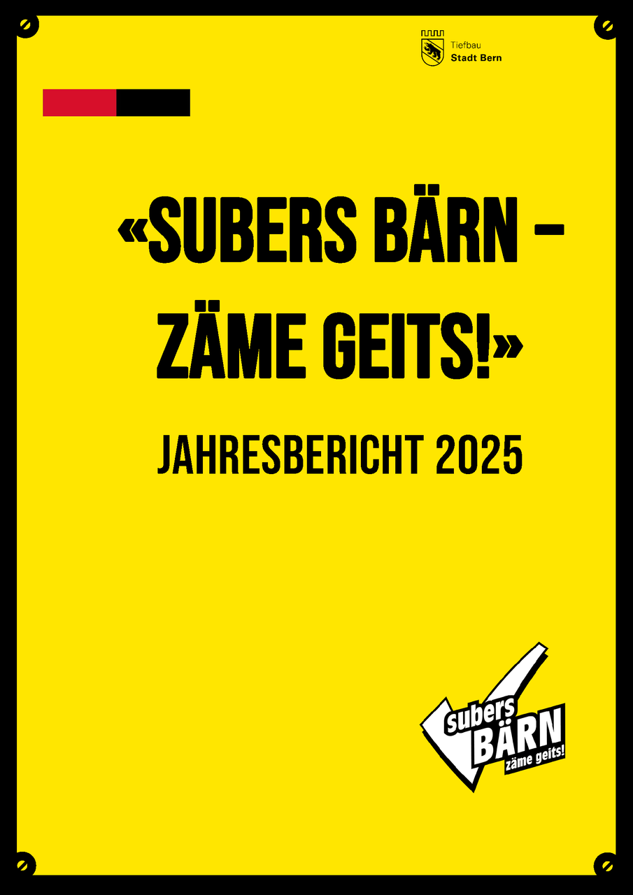 Der Jahresbericht zu den Aktivitäten von Subers Bärn 2025 ist da. Er zeigt die vielfältigen Aktivitäten der «Subers Bärn»-Partnerorganisationen auf: von Plakatkampagnen im öffentlichen Raum und online, über den Einsatz der Reinigungs- und Entsorgungsteams an der Women's EURO im Sommer bis hin zur dritten Aareböötle-Kampagne. Ebenfalls fasst der Bericht die Resultate der Bevölkerungsbefragung zu den Themen Sauberkeit in der Stadt Bern und Abfallentsorgungssystem zusammen: Die Sauberkeit im öffentlichen Raum wird positiv wahrgenommen. Trotzdem empfindet rund die Hälfte der Einwohner*innen Littering als grosses Problem. «Subers Bärn» bleibt also relevant. Die «Subers Bärn»-Kampagnen sind auch 2026 wieder in den sozialen Medien und im öffentlichen Raum unterwegs – sei es auf Spielplätzen und Parkanlagen, in der Innenstadt oder an der Aare.
