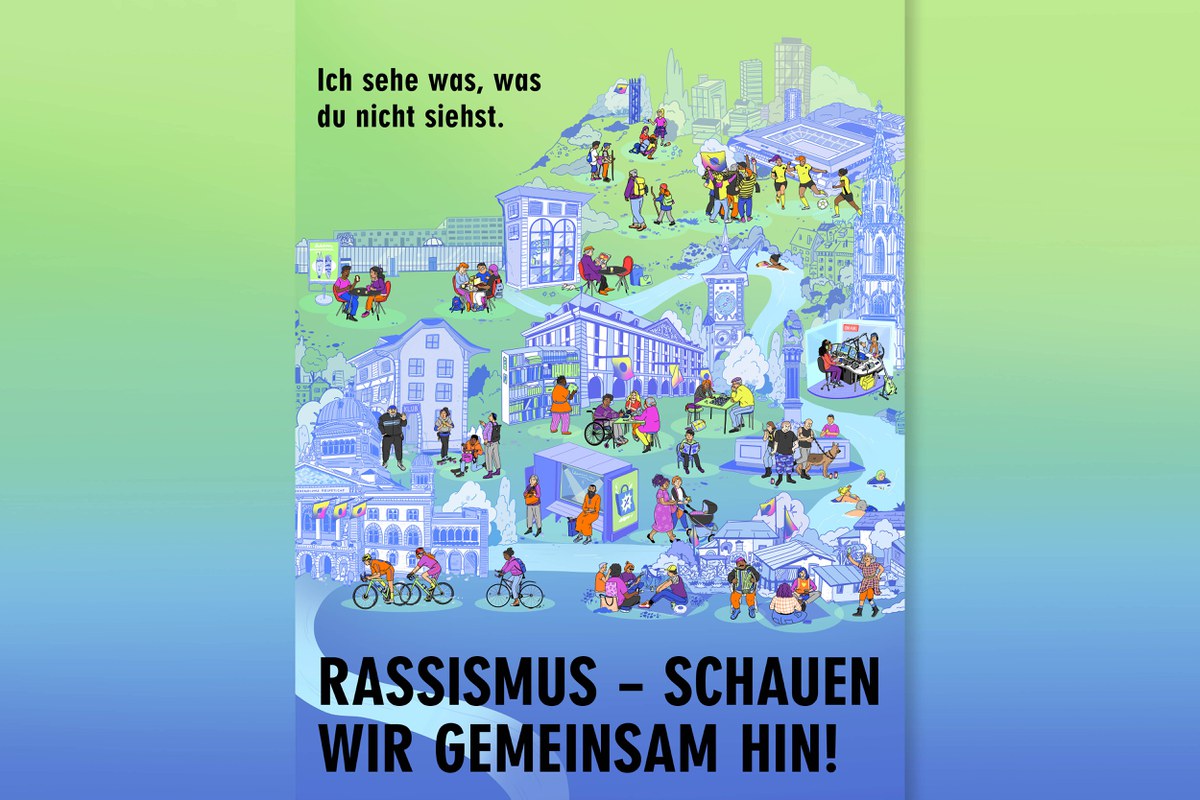 Die 16. Aktionswoche der Stadt Bern gegen Rassismus findet vom Samstag, 21. März, bis Samstag, 28. März 2026, statt. Im Rahmen der dreijährigen Kampagne «Ich sehe was, was du nicht siehst – Rassismus: Schauen wir gemeinsam hin!» beleuchtet die Stadt Bern das Thema Rassismus in verschiedenen Lebensbereichen. 2026 liegt der Fokus auf dem Bereich «Freizeit». Der öffentliche Kick-off-Anlass findet am Samstag, 21. März 2026, ab 11 Uhr in der Vierten Wand statt.