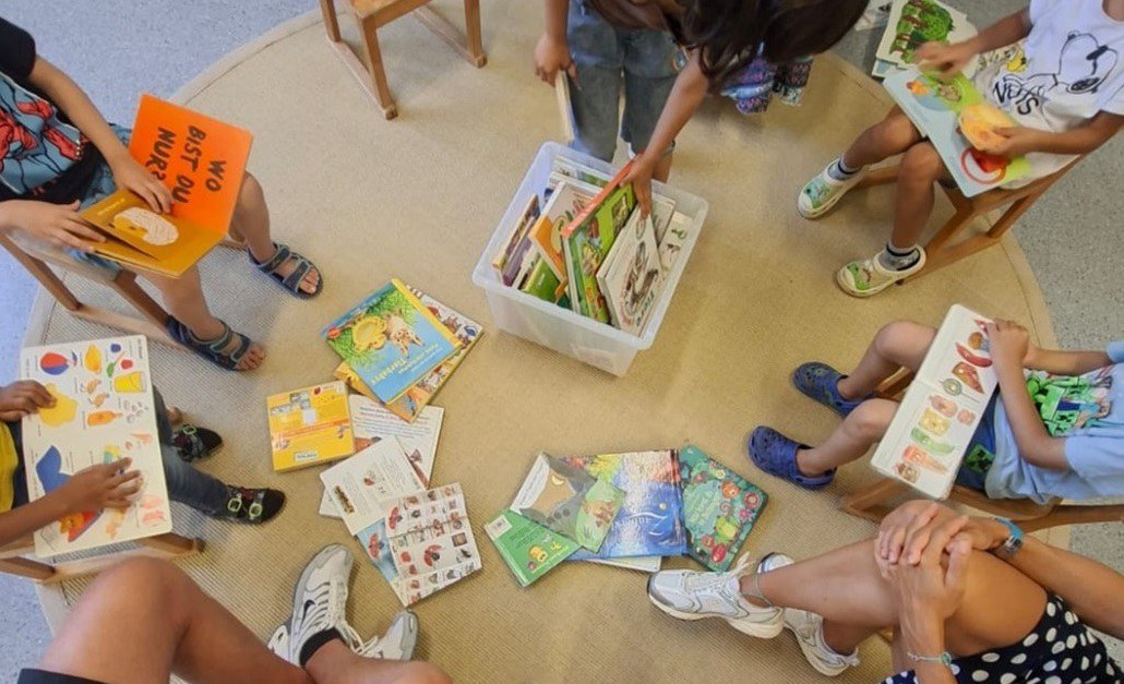 Seit Oktober 2024 führt die Stadt Bern für die schulpflichtigen Kinder der Kollektivunterkunft Tiefenau vor Ort eine Schule. Die Schüler*innen stammen aus unterschiedlichsten Ländern und werden in den Empfangsklassen auf den Übertritt ins Regelschulsystem vorbereitet.