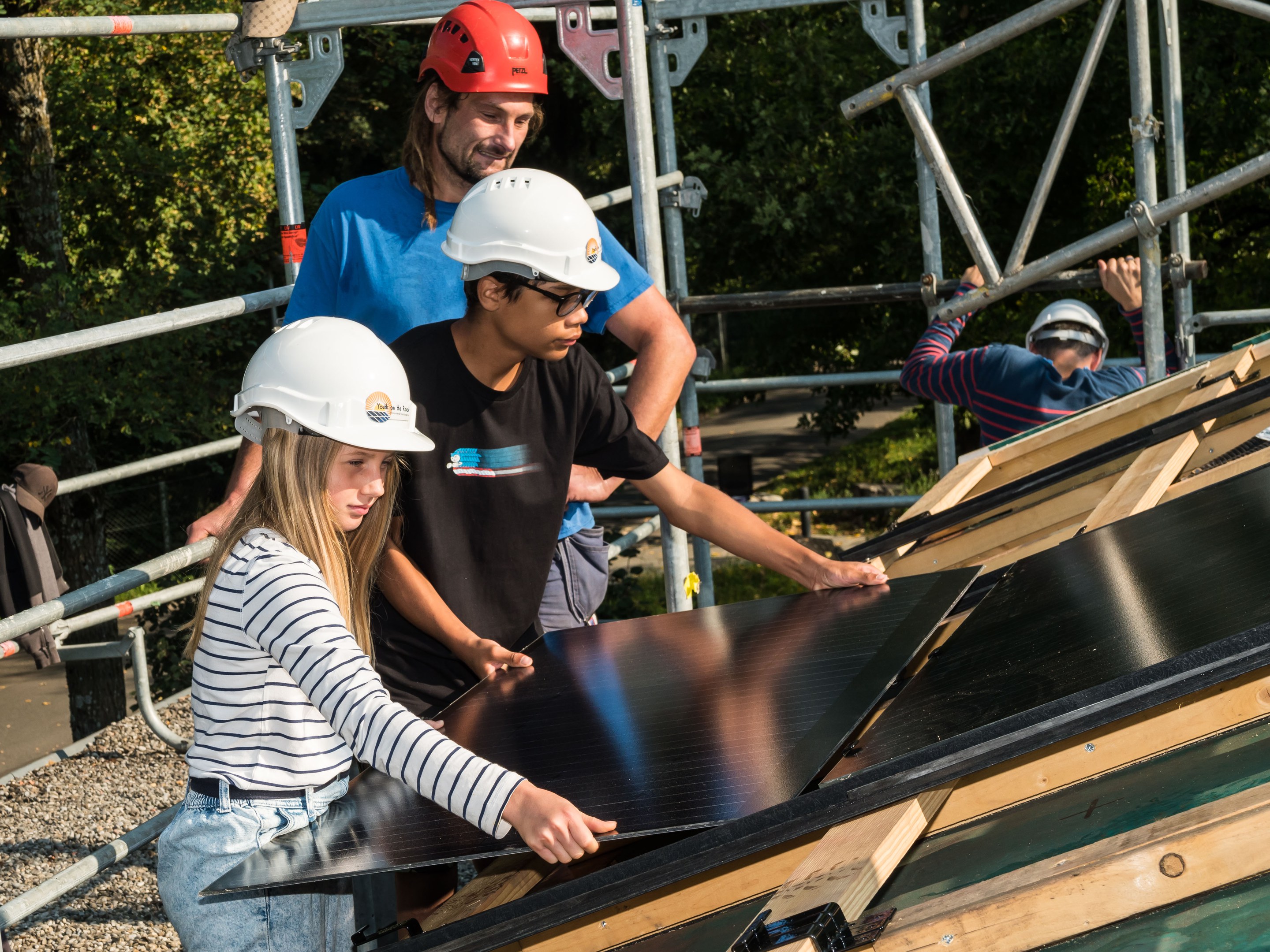 Heute war der erste Tag des Jugend-Solarprojekts. Die 40 Schülerinnen und Schüler der Klassen 2AB aus der Mosaikschule Munzinger teilten sich in Gruppen auf und besuchten verschiedene Workshops zum Thema Sonnenenergie, welche von der Organisation «Youth on the Roof» geleitet wurden. Sinn und Ziel dieses einwöchigen Projekts ist es, Solarpanels auf zwei Pavillonbauten der Volksschule Marzili zu montieren. Die Fläche ist etwa so gross wie drei Tennisplätze.
