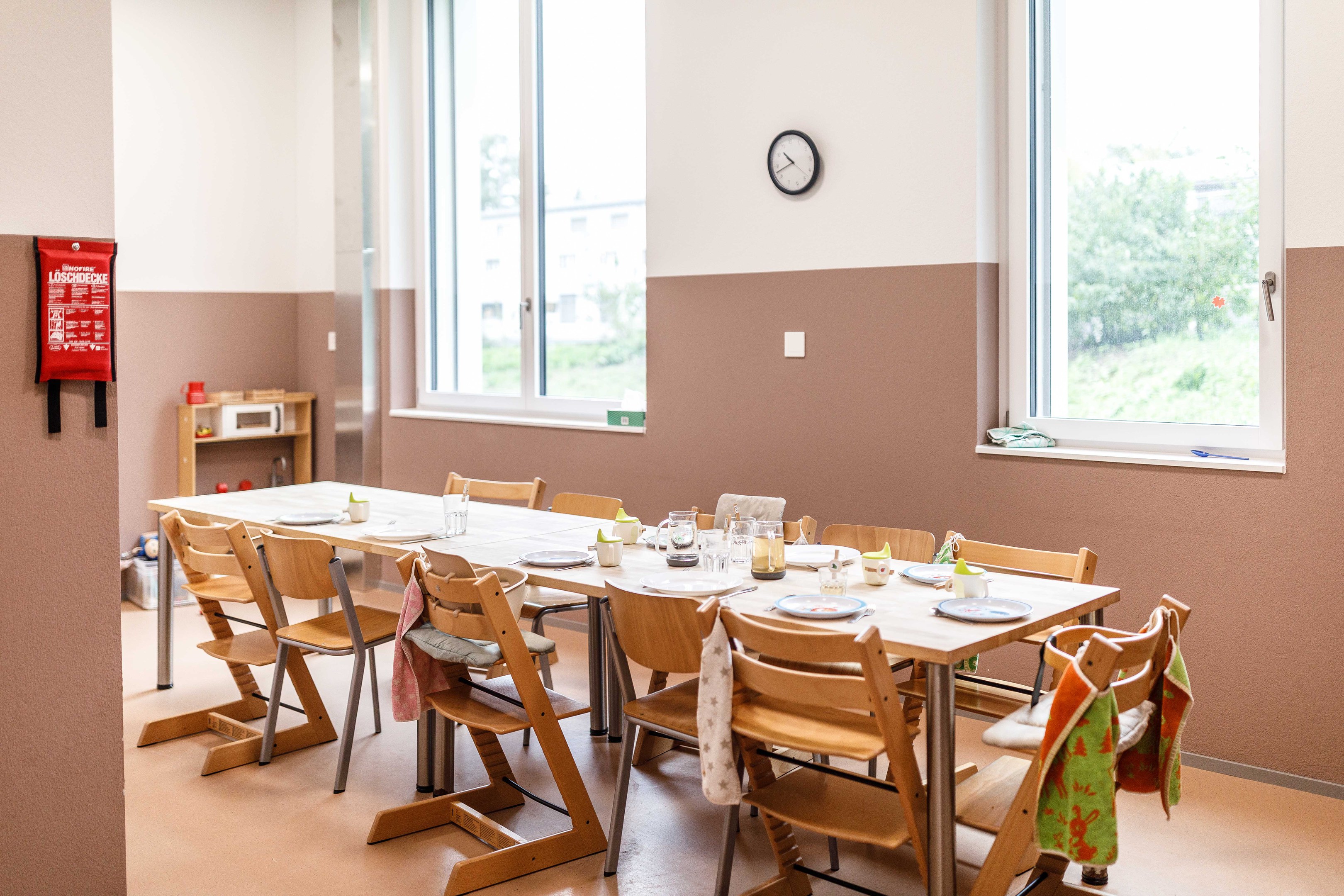 Seit Mai 2025 befindet sich die Kita Wyler in einem grosszügigen Neubau mit kinderfreundlichen Räumlichkeiten.
