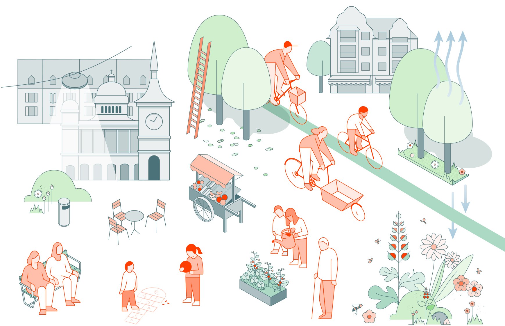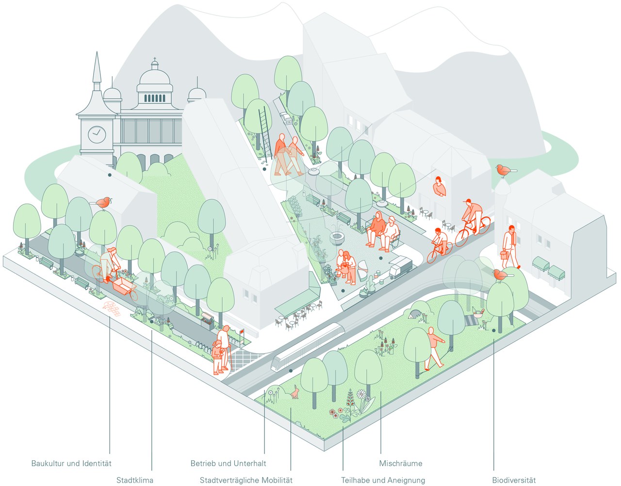 Wer öffentliche Räume plant, muss sich damit auseinandersetzen, welche Aufgaben sie für die heutige und für die kommende Generation erfüllen müssen. «Bern baut» versteht öffentliche Räume als Orte, die für junge wie alte Menschen gleichermassen funktionieren und wesentlich zur Lebensqualität für die gesamte Gesellschaft beitragen. Eine hohe Lebensqualität ist ein Schlüsselfaktor für eine wirtschaftlich erfolgreiche und sozial stabile Stadt.