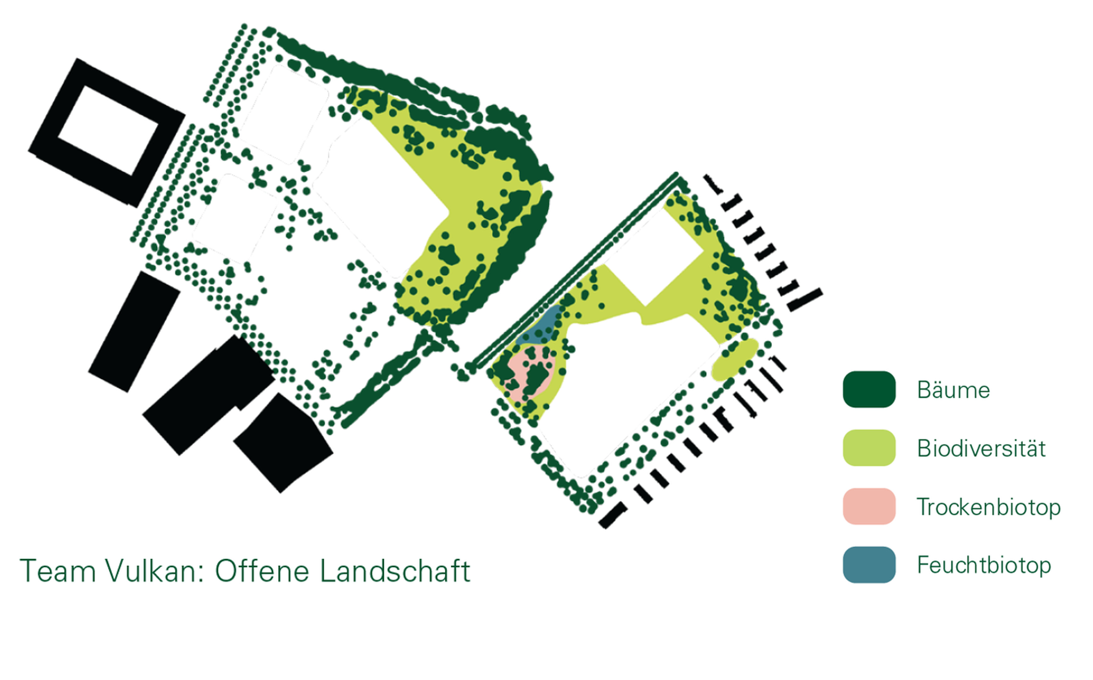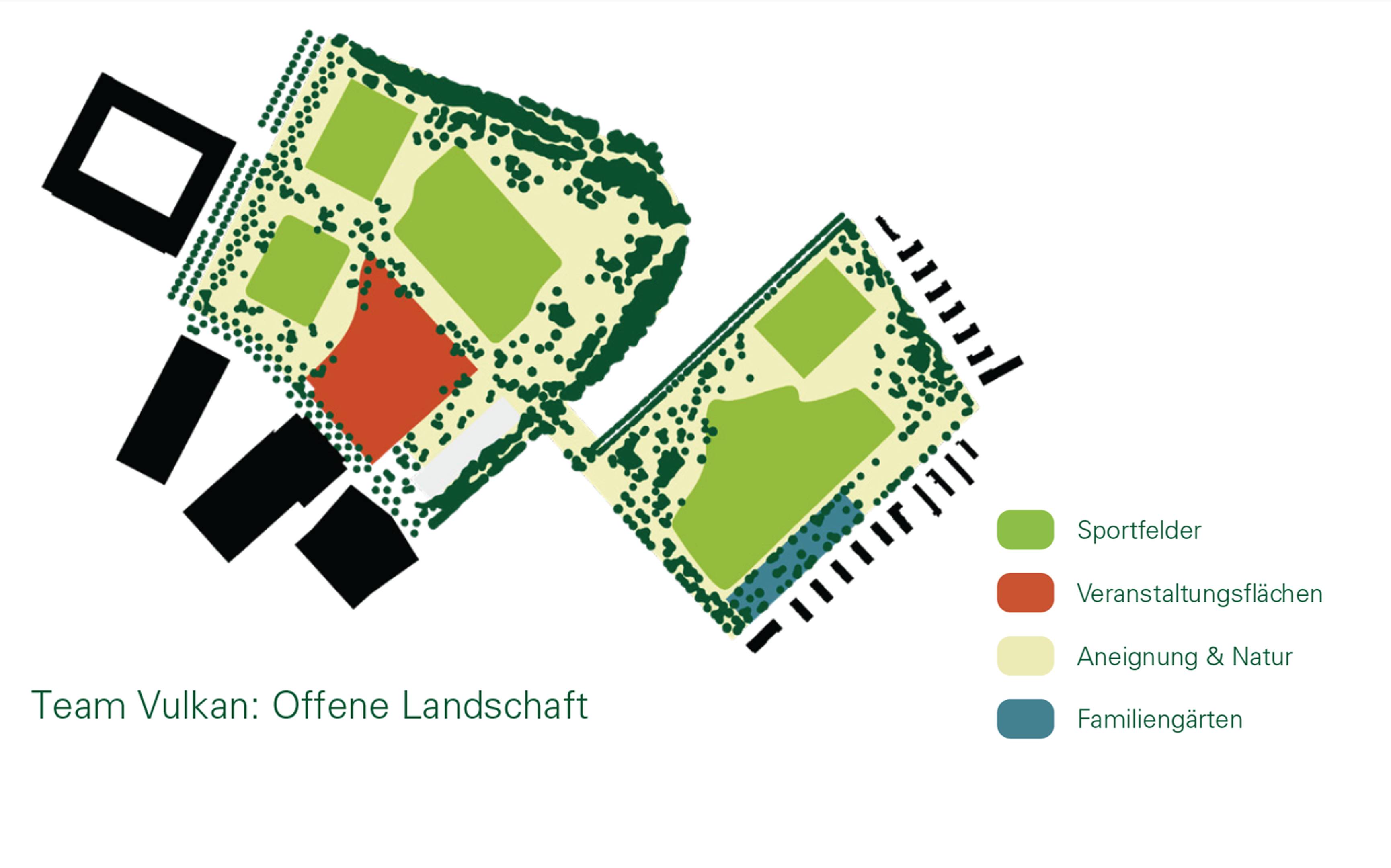 - Für die Nutzungsverteilung prüften die Teams, wie viel und welche Nutzungen die Allmenden aufnehmen können, ohne den Charakter der Weite und Offenheit zu verlieren. Räumliche und betriebliche Ansprüche sowie die Multifunktionalität von Flächen waren Teil der Aufgabe.
