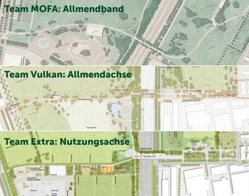 In allen Varianten erweist sich die Idee eines verbindenden Bands zwischen der Grossen und der Kleinen Allmend als wichtiges Element:
