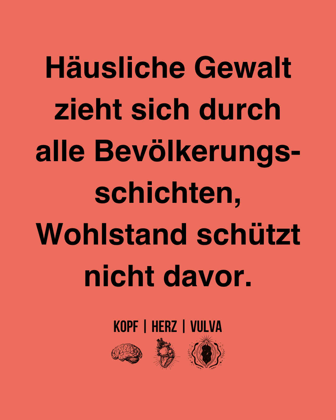 Häusliche Gewalt zeigt sich nicht immer mit einem blauen Auge und Türenknallen. Sie kann auch als subtile emotionale Manipulation daher kommen, als schleichendes Isoliertwerden von Freund:innen und Familie, als finanzielle Abhängigkeit oder kontrollierende Eifersucht. Weil Betroffene oft schweigen und ihrer inneren Stimme nicht trauen, ist die Sensibilisierung des sozialräumlichen Umfelds umso wichtiger. Opfer von häuslicher Gewalt fühlen sich oft schuldig, völlig ohne Grund. Gerade deshalb ist es wichtig, das Erfahren von Gewalt zu enttabuisieren und ihnen eine Stimme zu geben.