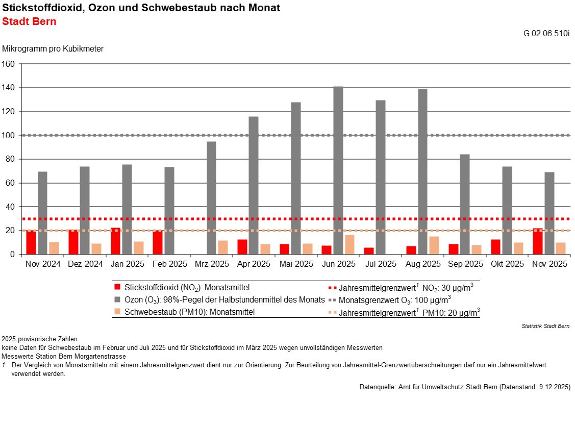 Ozon, 98%-Pegel der Halbstundenmittel des Monats: 69 μg/m3