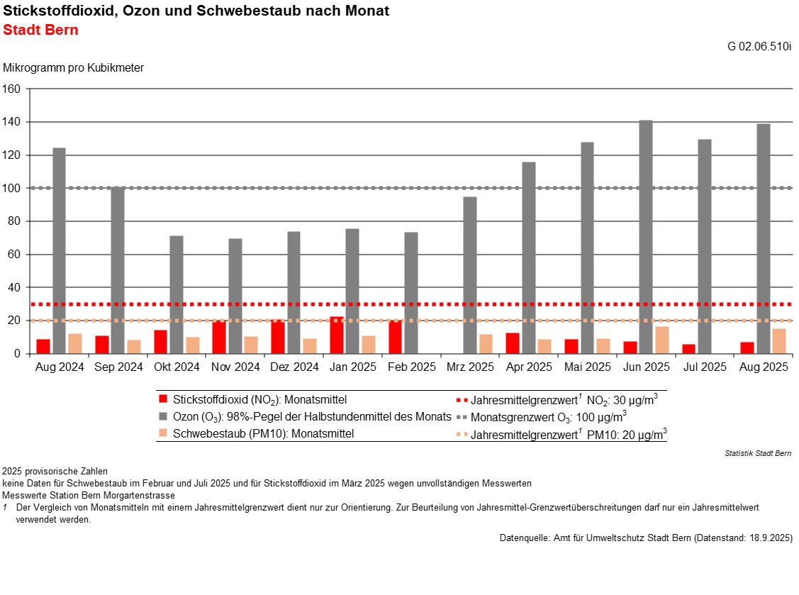 Ozon, 98%-Pegel der Halbstundenmittel des Monats: 139 μg/m3