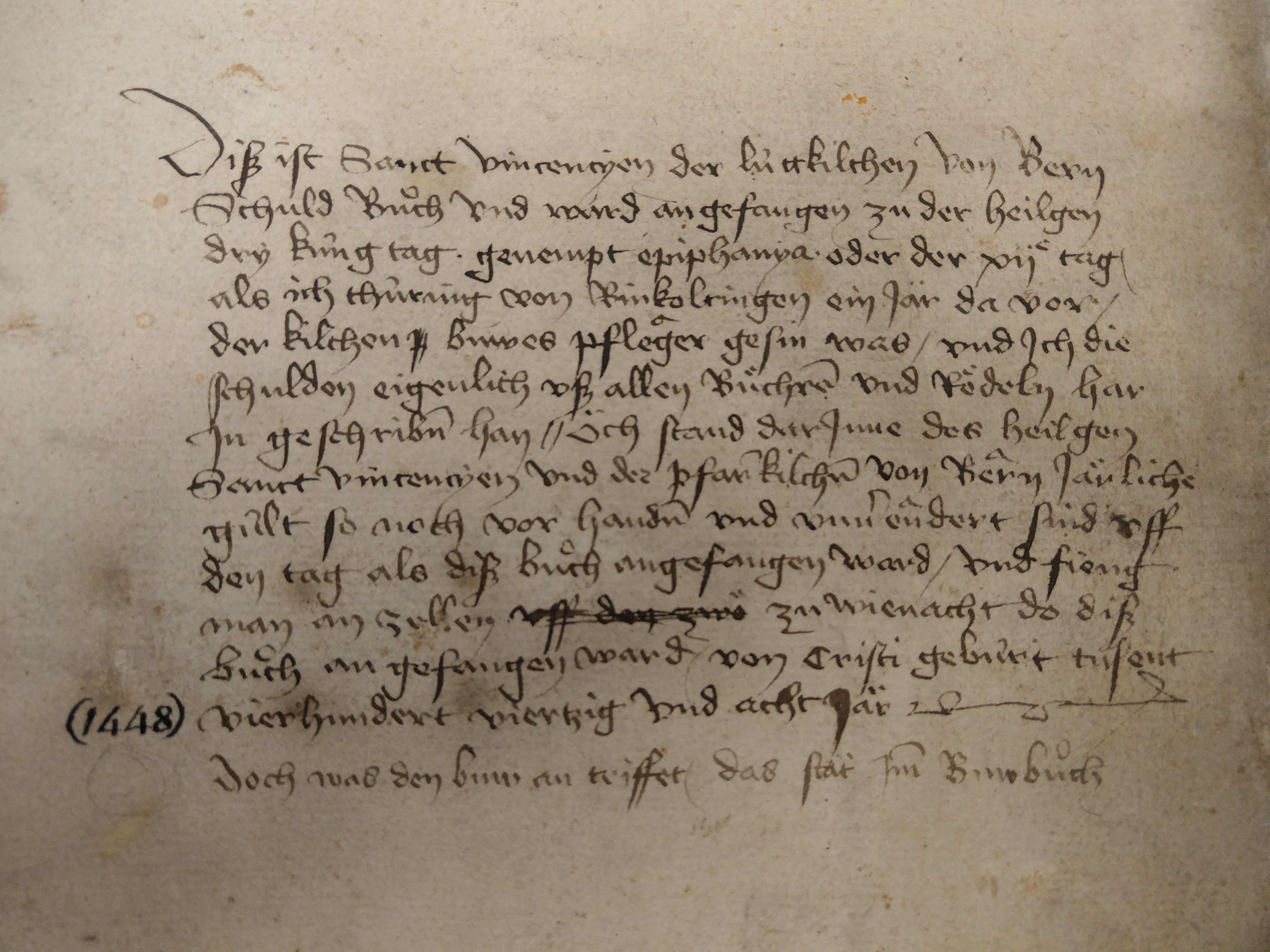 Wegen der oftmals schlechten Zahlungsmoral der Stifterinnen und Stifter übertrug der Kirchenpfleger Thüring von Ringoltingen symbolträchtig am Dreikönigstag des Jahres 1448 alle bestehenden Schulden in eine eigens dazu angelegte Papierhandschrift. Dazu fasste er die Ausstände von rund 450 Frauen und Männern in personalisierten Konten zusammen, gab die Zahlungsmodalitäten und -termine an und vermerkte die ausbezahlten Beträge. War eine Schuld abgelöst, strich er das betreffende Konto oder gab an, welche Zahlungen noch ausstanden. Daneben notierte Thüring von Ringoltingen auch jene Ausstände an Geld und Naturalien, die «der heilg» – also der Heilige Vinzenz – einzelnen Baufachleuten wie dem Münsterwerkmeister und weiteren Handwerkern vom Glasmaler und Kannengiesser bis zum Karrer und Tagelöhner schuldete. Dank der Stiftungstätigkeit der Bevölkerung konnten bis 1593 Chor- und Langhausgewölbe eingezogen und der Westturm bis auf die Höhe des Oktogons ausgeführt werden. In den Jahren 1889 bis 1893 entstand schliesslich noch der neugotische Turmhelm, dem das Berner Wahrzeichen sein prägnantes Aussehen verdankt.